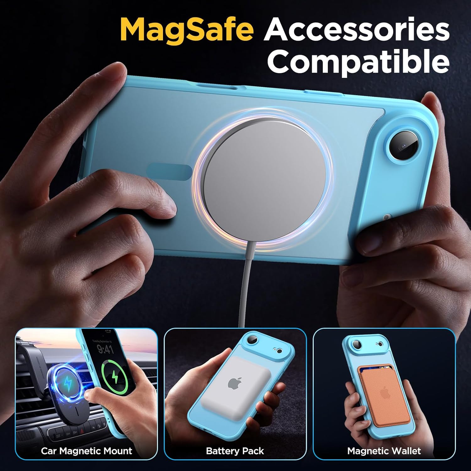 Oududianzi - Калъф за iPhone 17 Air, Съвместим с Magsafe калъф за мобилен телефон, Прозрачен матов PC гръб TPU силиконов защитен калъф, Защита на камерата, Прозрачен мат, Устойчив на надраскване