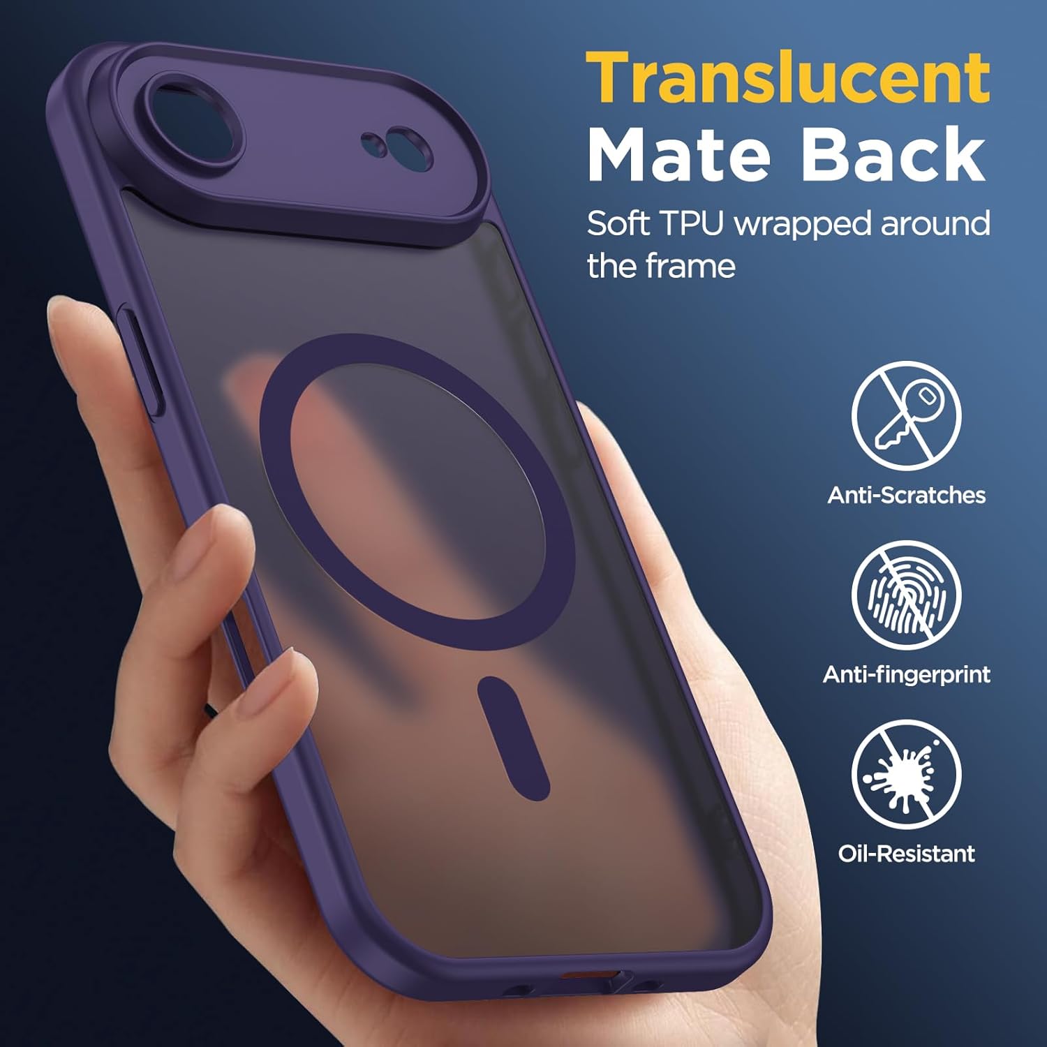 Oududianzi - Калъф за iPhone 17 Air, Съвместим с Magsafe калъф за мобилен телефон, Прозрачен матов PC гръб TPU силиконов защитен калъф, Защита на камерата, Прозрачен мат, Устойчив на надраскване