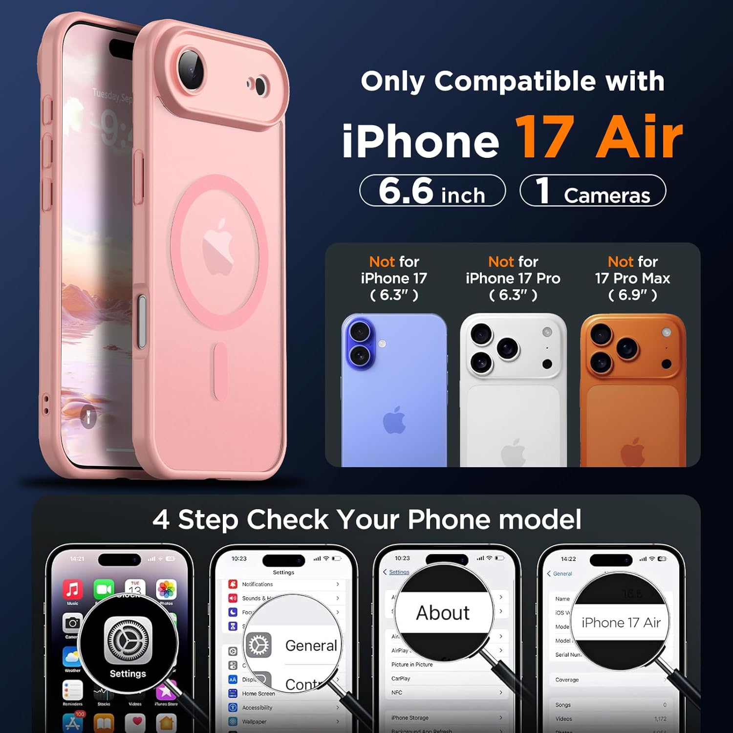 Oududianzi - Калъф за iPhone 17 Air, Съвместим с Magsafe калъф за мобилен телефон, Прозрачен матов PC гръб TPU силиконов защитен калъф, Защита на камерата, Прозрачен мат, Устойчив на надраскване