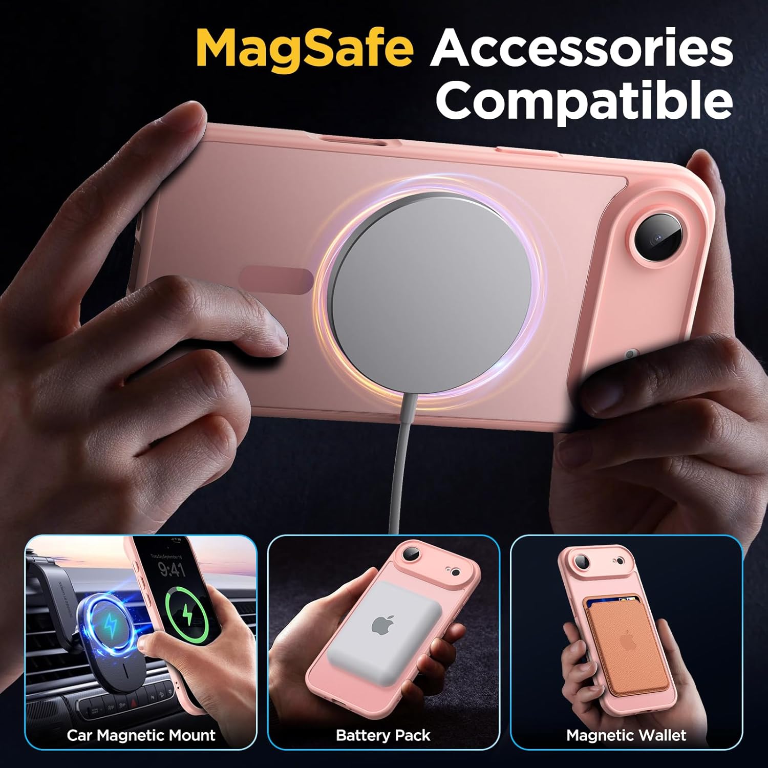 • Функция за магнитно засмукване: Мощният вграден магнит подобрява магнитната връзка и осигурява автоматично подравняване, като е съвместим с всички аксесоари MagSafe, като например магнитни зарядни устройства с вендуза, магнитни пакети с вендуза, магнитни държачи с вендуза и други. Независимо дали сте в ежедневието или пътувате, можете да се насладите на практичността, която калъфът носи със себе си.