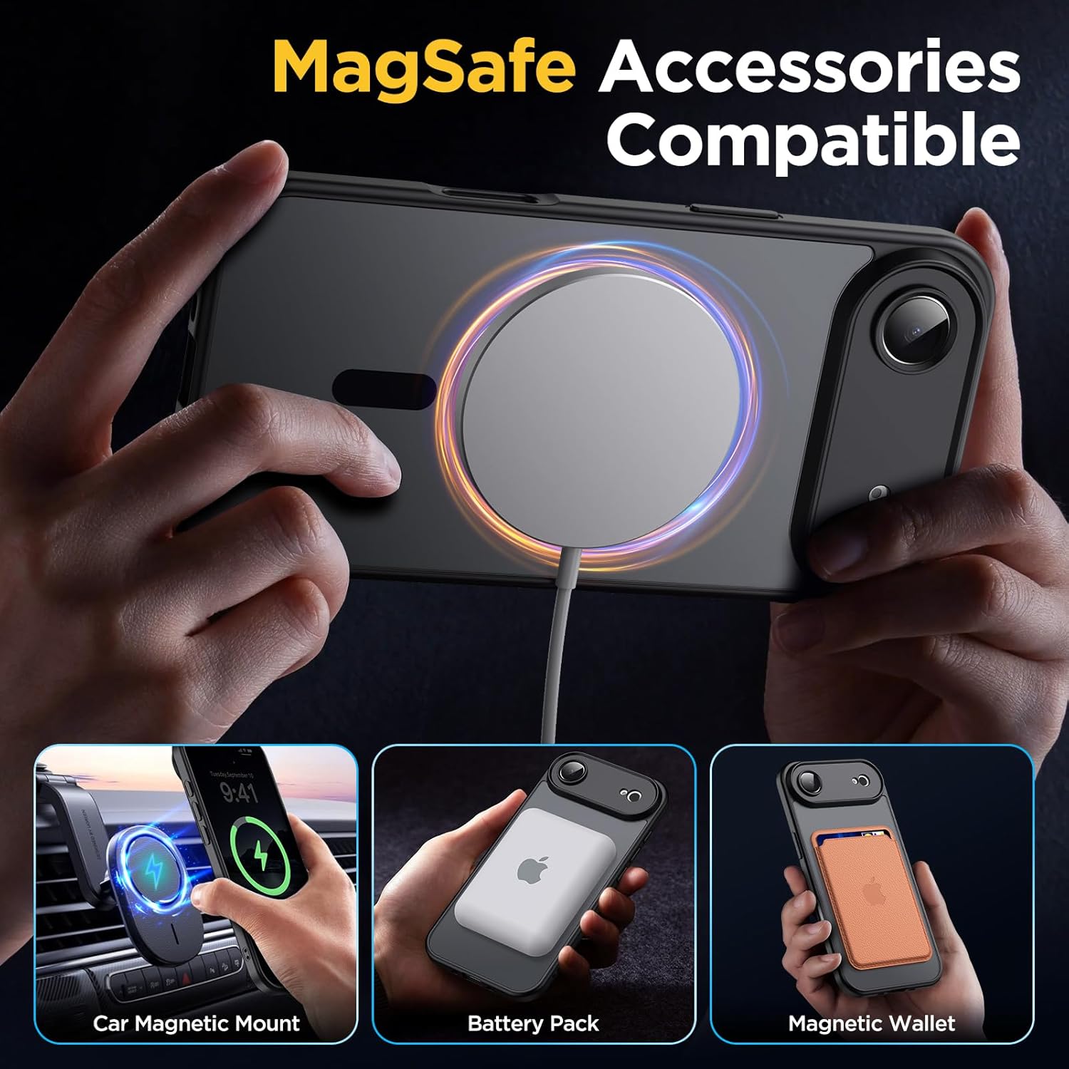 • [Съвместимост] Съвместим само с iPhone 17 Pro с MagSafe. Прецизното изрязване позволява лесен достъп до всички бутони, сензори и камери и осигурява чувствително и ясно тактилно възприятие при натискане на един бутон.