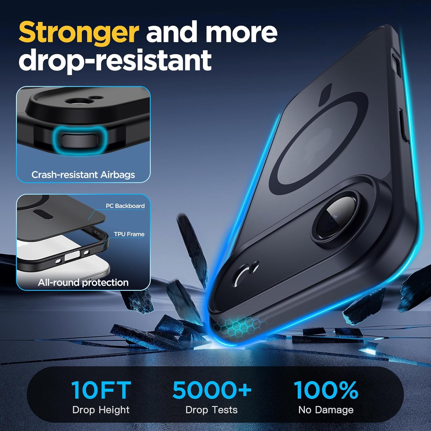 • [Военна защита от падане] Оборудвана с 4 удароустойчиви ъгъла на конструкцията и технология за 360° въздушни възглавници, подсилена с допълнително абсорбиране на удара. Ефективно абсорбира и разпределя силите на удара, като същевременно постига защита от военно ниво, като същевременно запазва лек и тънък профил.