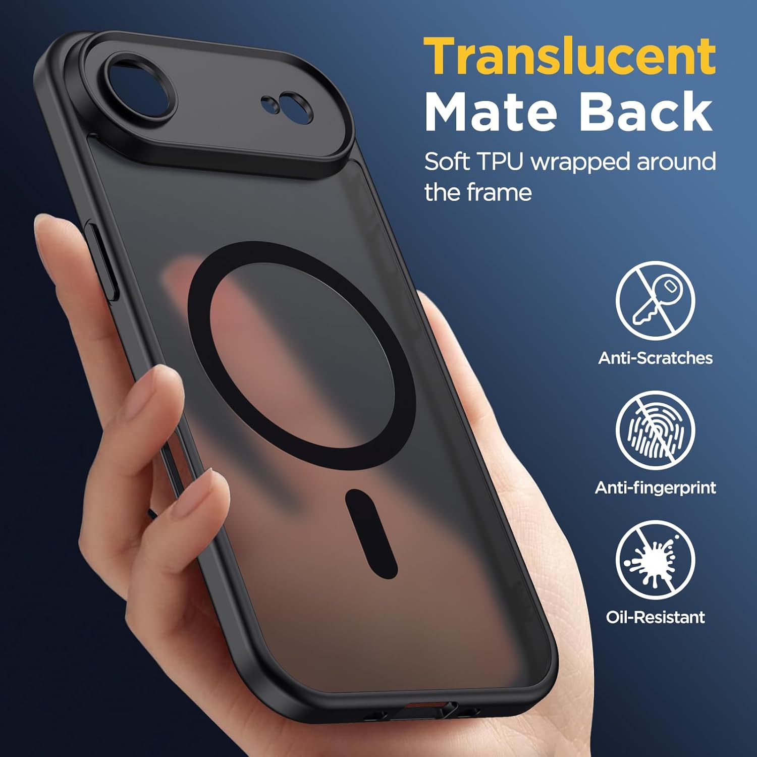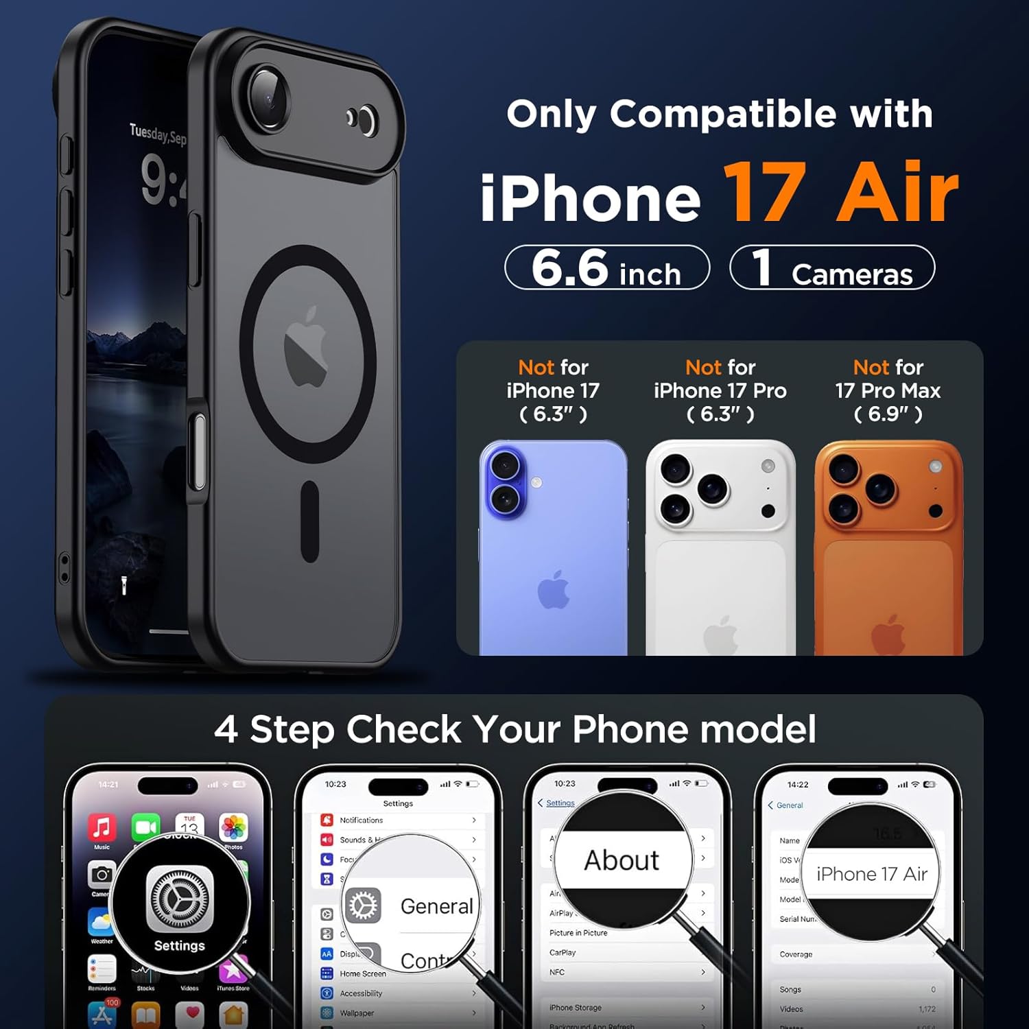 Oududianzi - Калъф за iPhone 17 Air, Съвместим с Magsafe калъф за мобилен телефон, Прозрачен матов PC гръб TPU силиконов защитен калъф, Защита на камерата, Прозрачен мат, Устойчив на надраскване