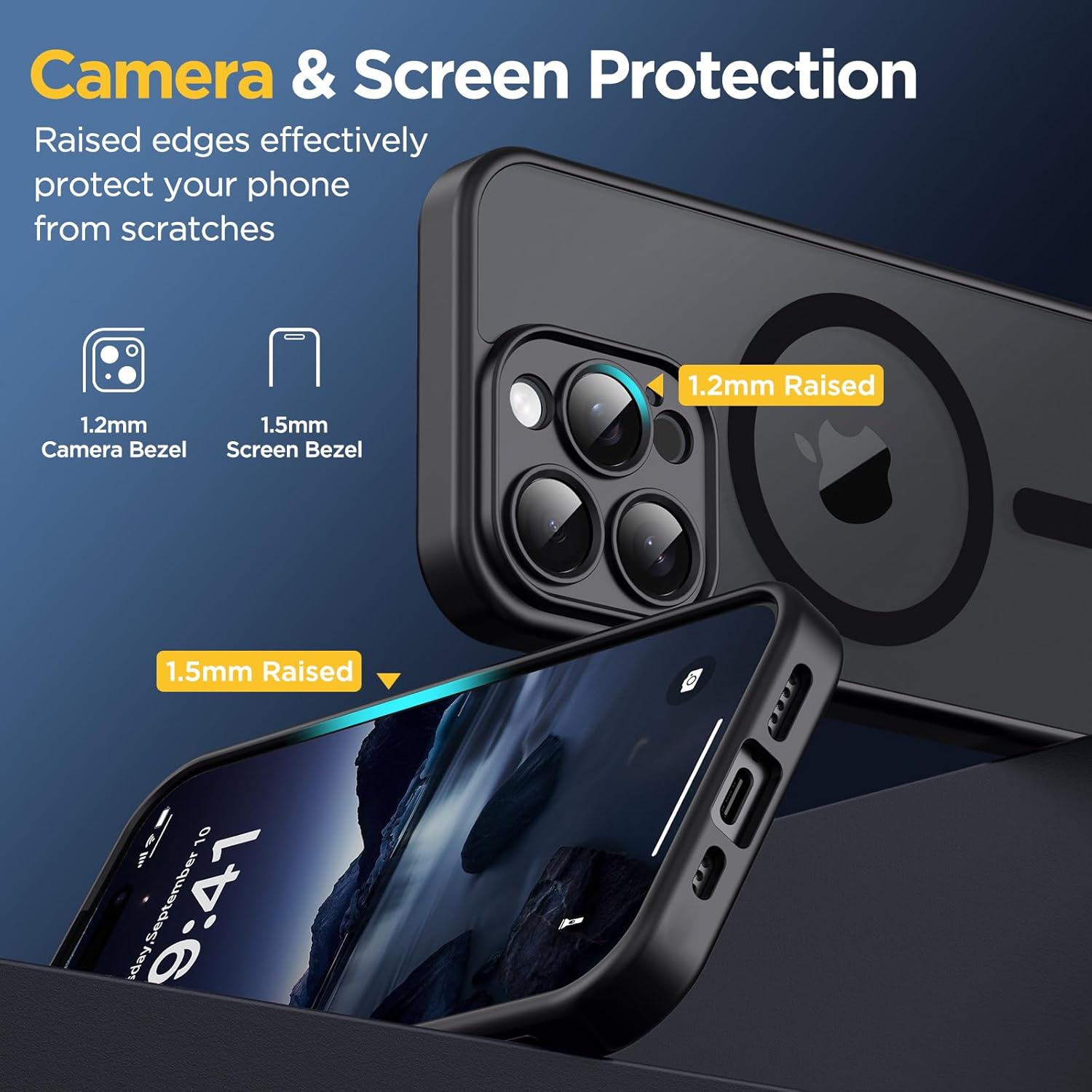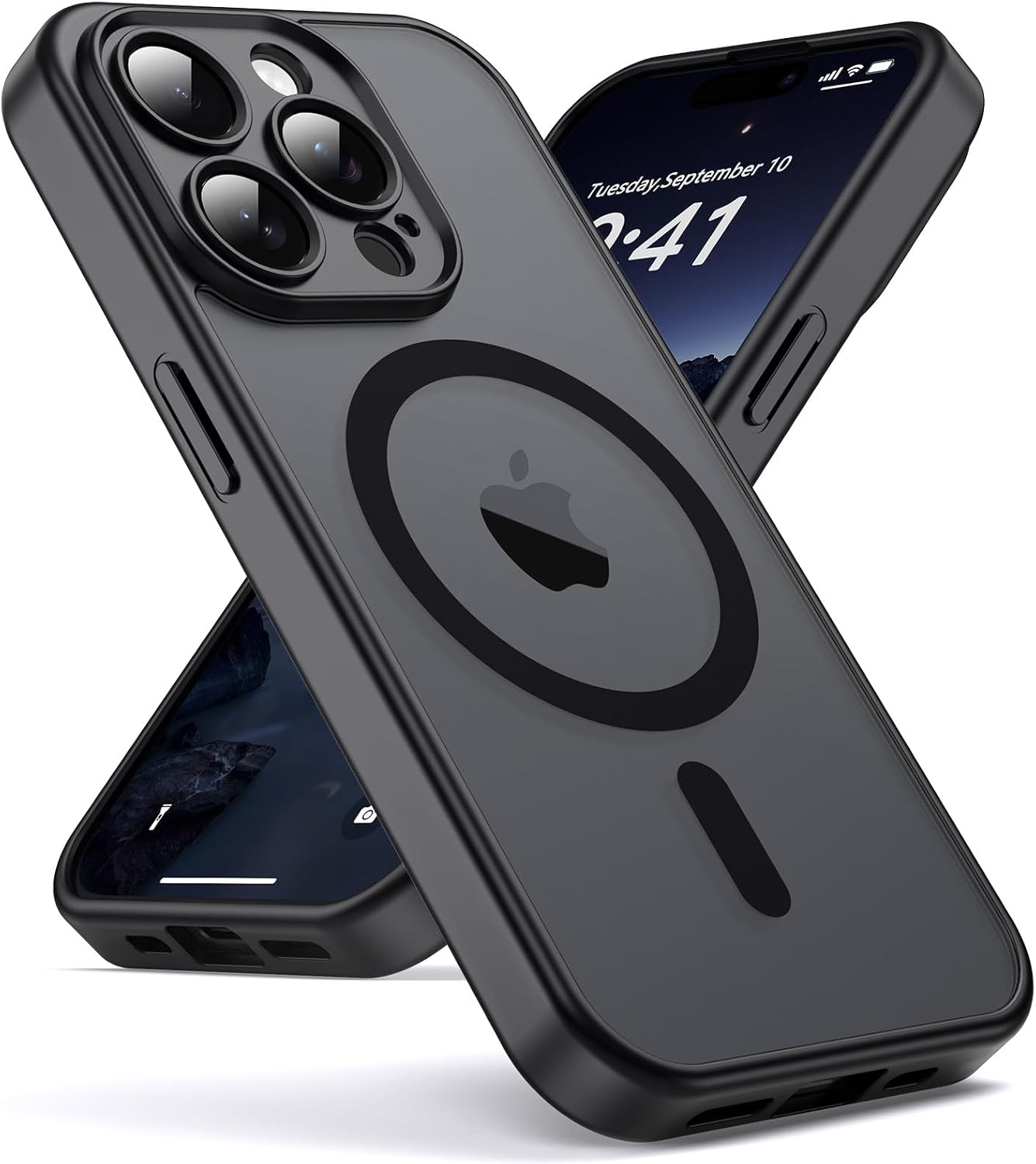 Oududianzi - Кейс за iPhone 15 Pro Max, Съвместим с Magsafe калъф за мобилен телефон, Прозрачен матов PC гръб TPU силиконов защитен калъф, Защита на камерата, Прозрачен мат, Устойчив на надраскване