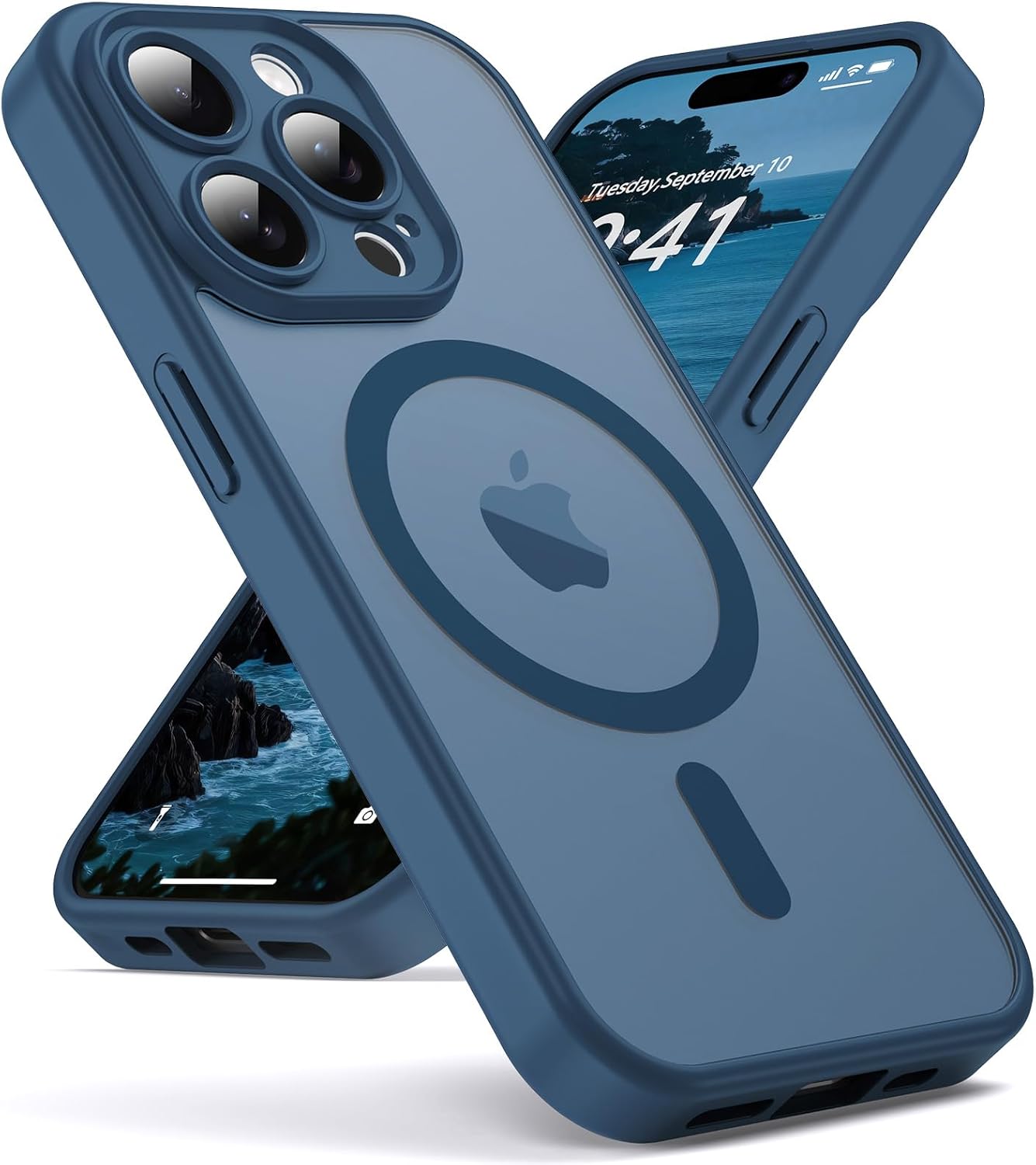 Oududianzi - Кейс за iPhone 15 Pro Max, съвместим с Magsafe, мобилен телефон, прозрачен матов PC гръб, TPU силиконов защитен калъф, защита на камерата, прозрачен матов, устойчив на надраскване