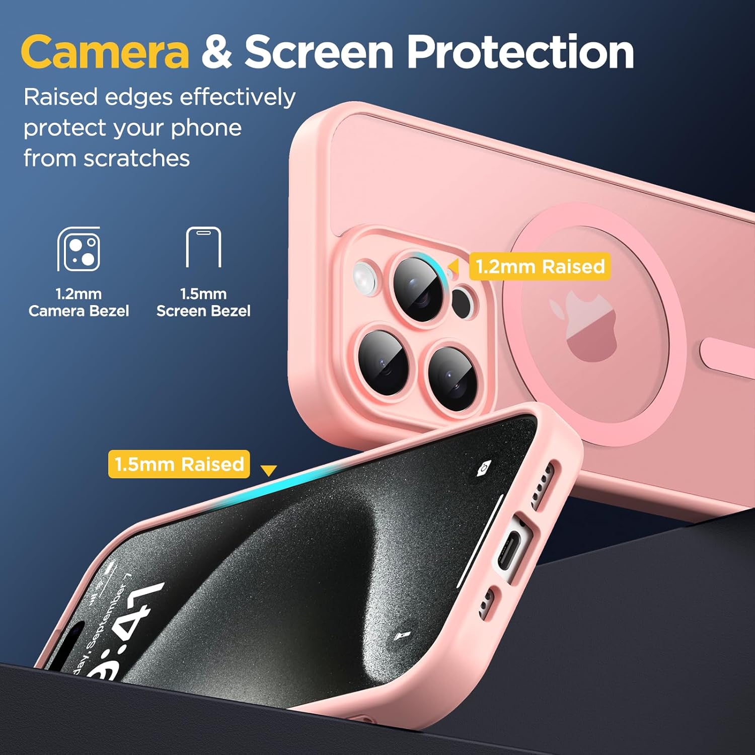 Oududianzi - Кейс за iPhone 15 Pro, Съвместим с Magsafe калъф за мобилен телефон, Прозрачен матов PC гръб TPU силиконов защитен калъф, Защита на камерата, Прозрачен мат, Устойчив на надраскване