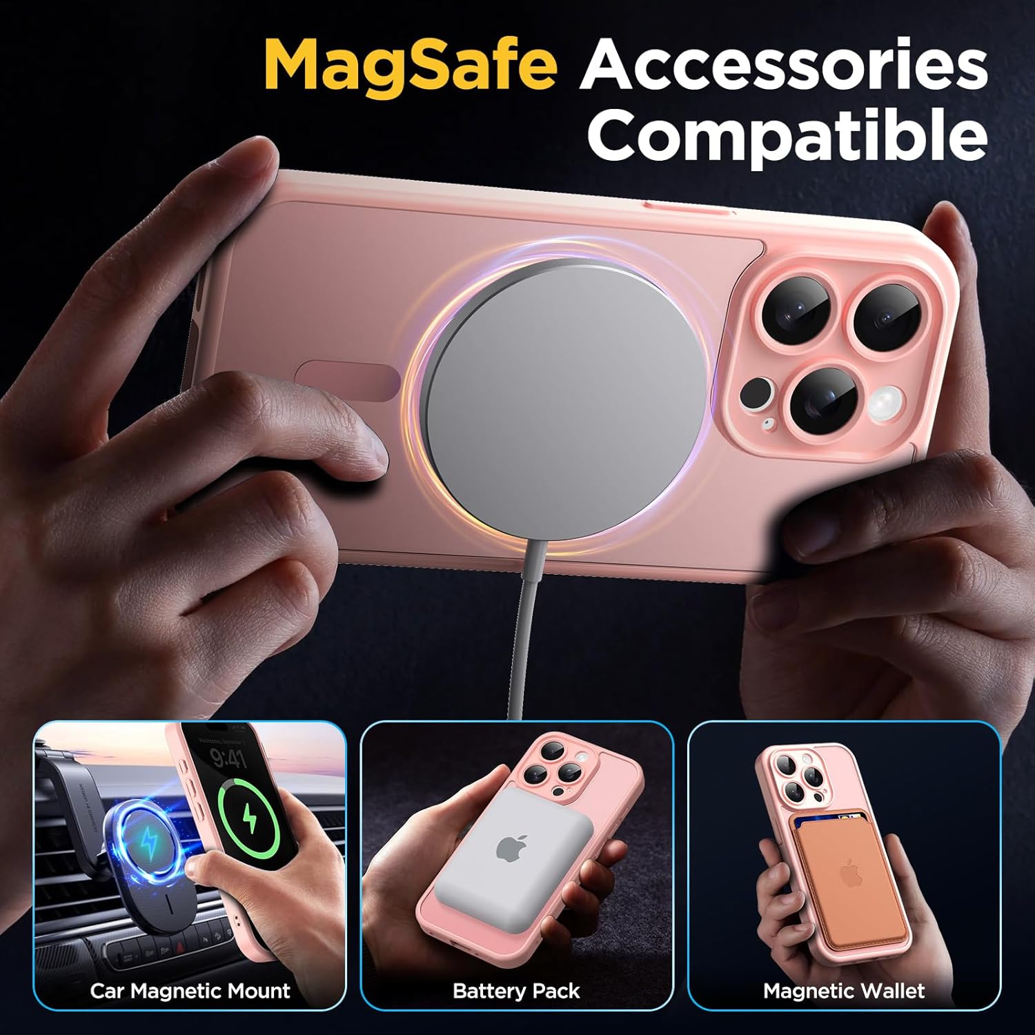 • Функция за магнитно засмукване: Мощният вграден магнит подобрява магнитната връзка и осигурява автоматично подравняване, като е съвместим с всички аксесоари MagSafe, като например магнитни зарядни устройства с вендуза, магнитни пакети с вендуза, магнитни държачи с вендуза и други. Независимо дали сте в ежедневието или пътувате, можете да се насладите на практичността, която калъфът носи със себе си.