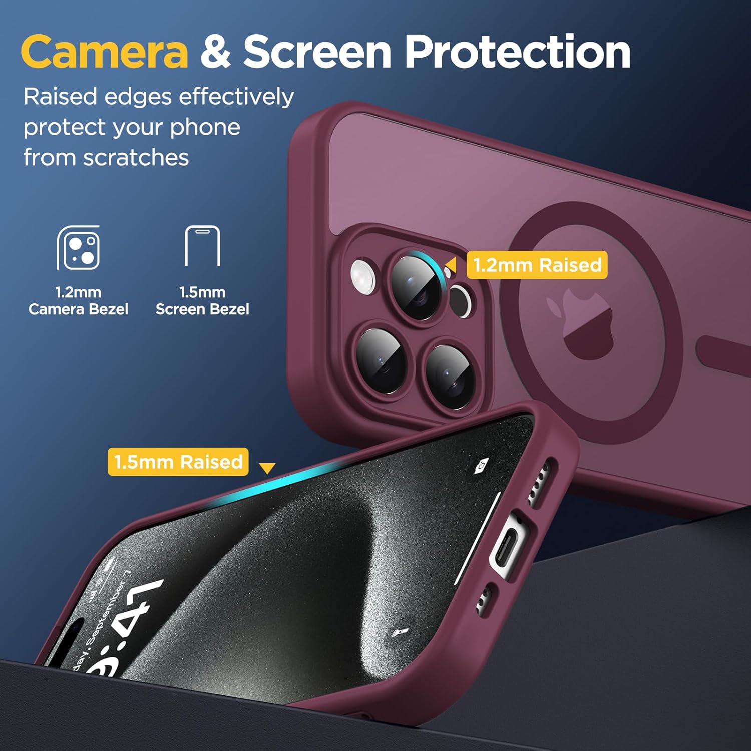 Oududianzi - Кейс за iPhone 15 Pro, Съвместим с Magsafe калъф за мобилен телефон, Прозрачен матов PC гръб TPU силиконов защитен калъф, Защита на камерата, Прозрачен мат, Устойчив на надраскване