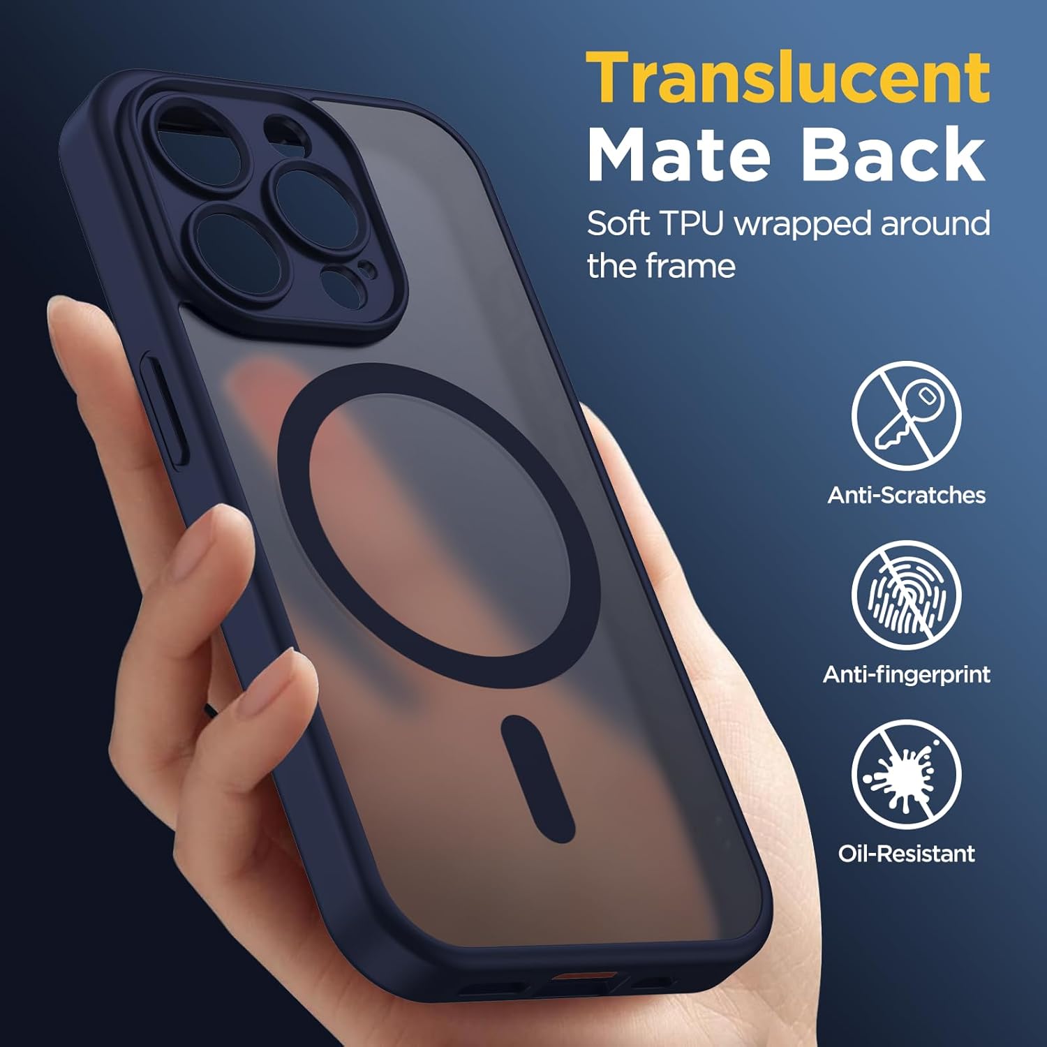 • [Висококачествен матов материал] Състои се от матов PC заден панел и гъвкава TPU рамка. Полупрозрачният матов гръб придава на телефона ви мистериозен и стилен дизайн. Оборудван с нано-олеофобно покритие, което ефективно отблъсква пръстови отпечатъци, водни петна, маслени следи и прах.