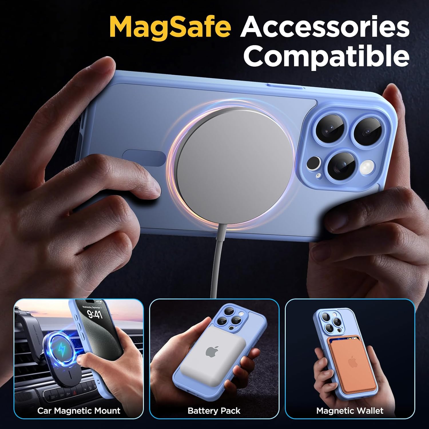 • Функция за магнитно засмукване: Мощният вграден магнит подобрява магнитната връзка и осигурява автоматично подравняване, като е съвместим с всички аксесоари MagSafe, като например магнитни зарядни устройства с вендуза, магнитни пакети с вендуза, магнитни държачи с вендуза и други. Независимо дали сте в ежедневието или пътувате, можете да се насладите на практичността, която калъфът носи със себе си.