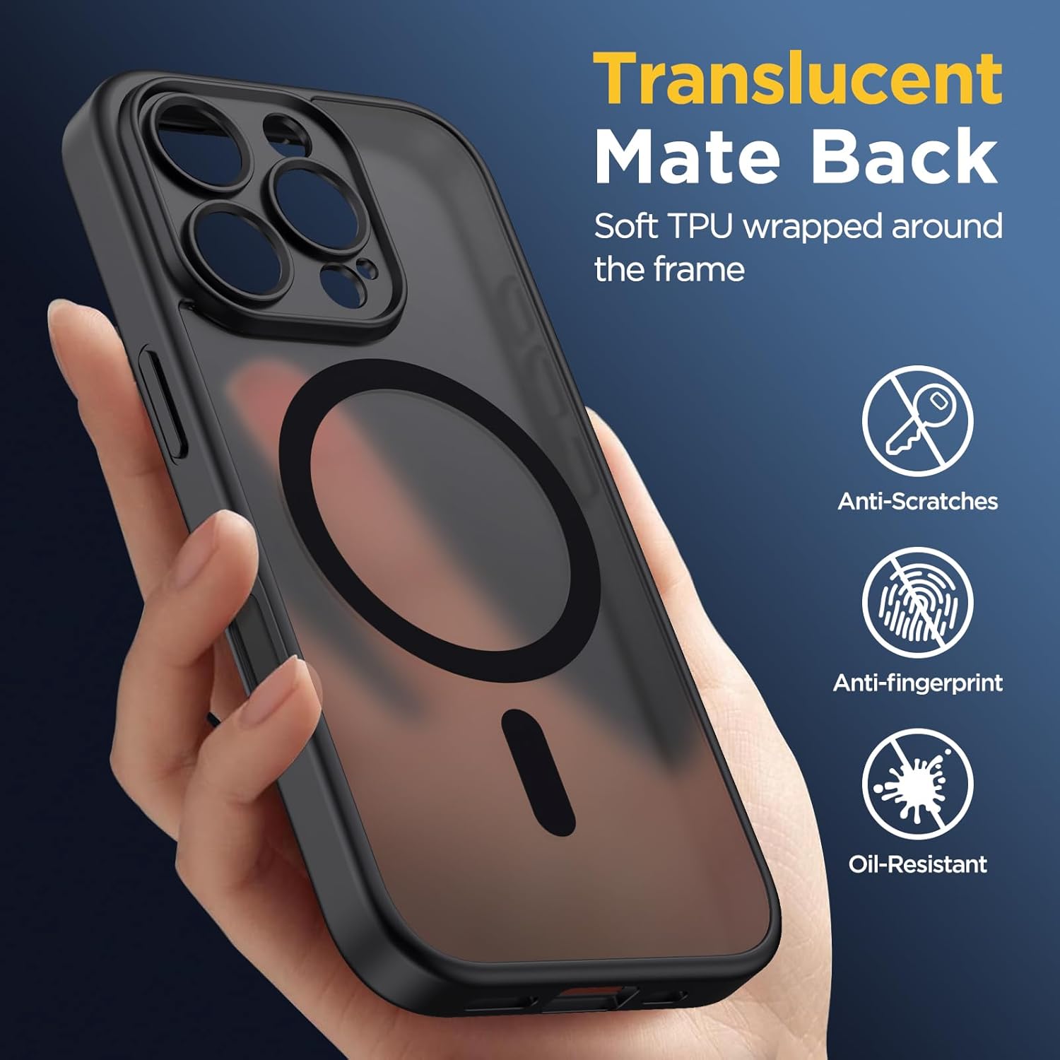 • [Висококачествен матов материал] Състои се от матов PC заден панел и гъвкава TPU рамка. Полупрозрачният матов гръб придава на телефона ви мистериозен и стилен дизайн. Оборудван с нано-олеофобно покритие, което ефективно отблъсква пръстови отпечатъци, водни петна, маслени следи и прах.