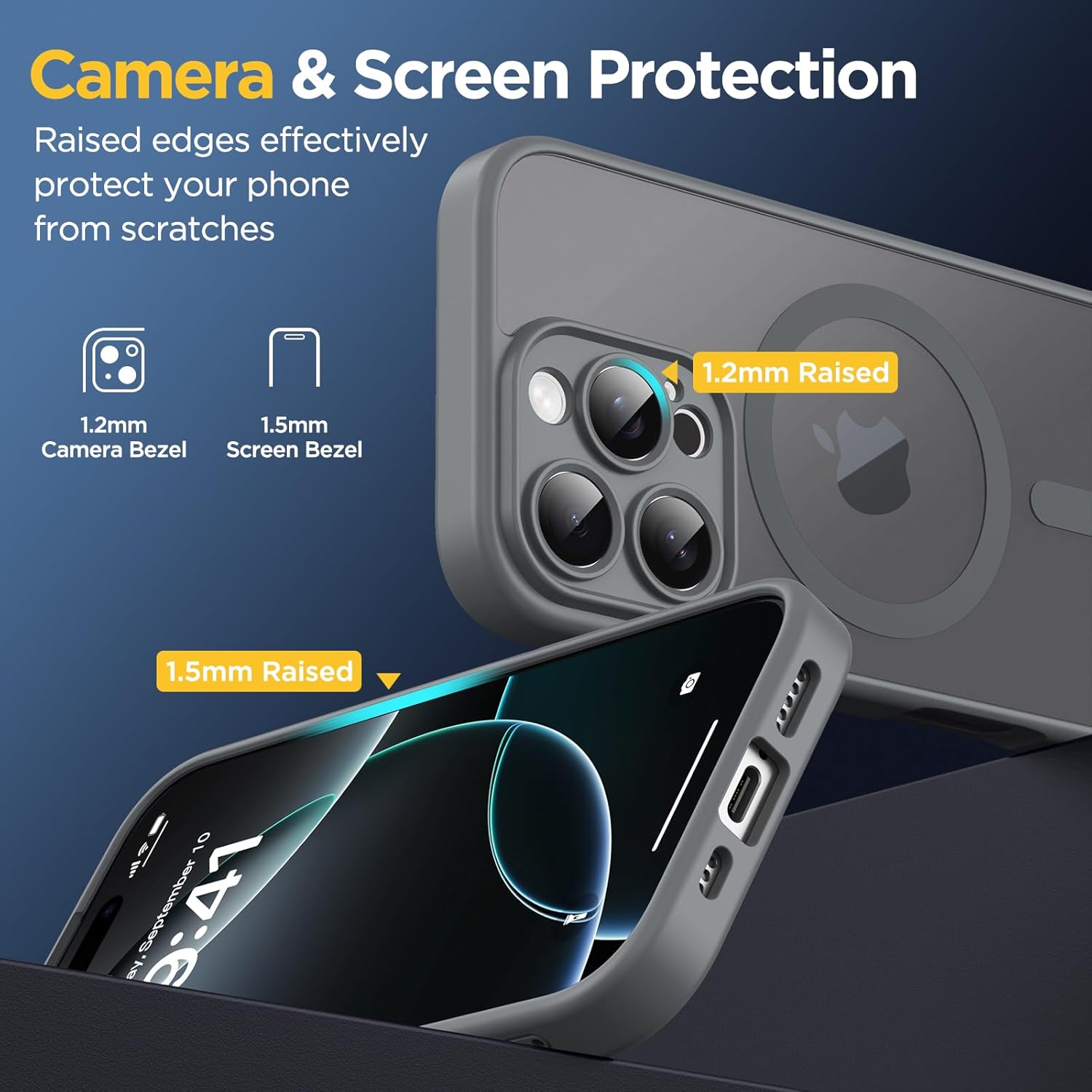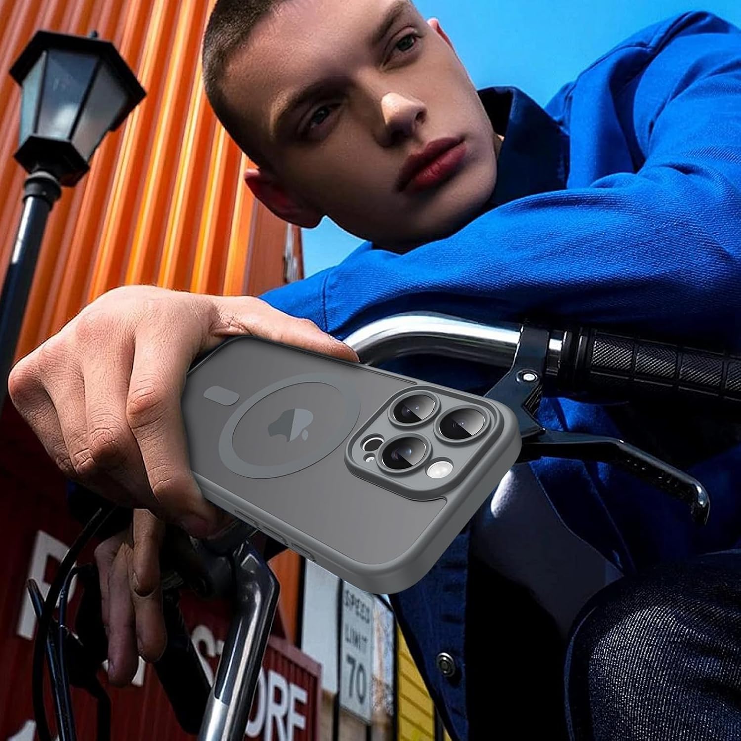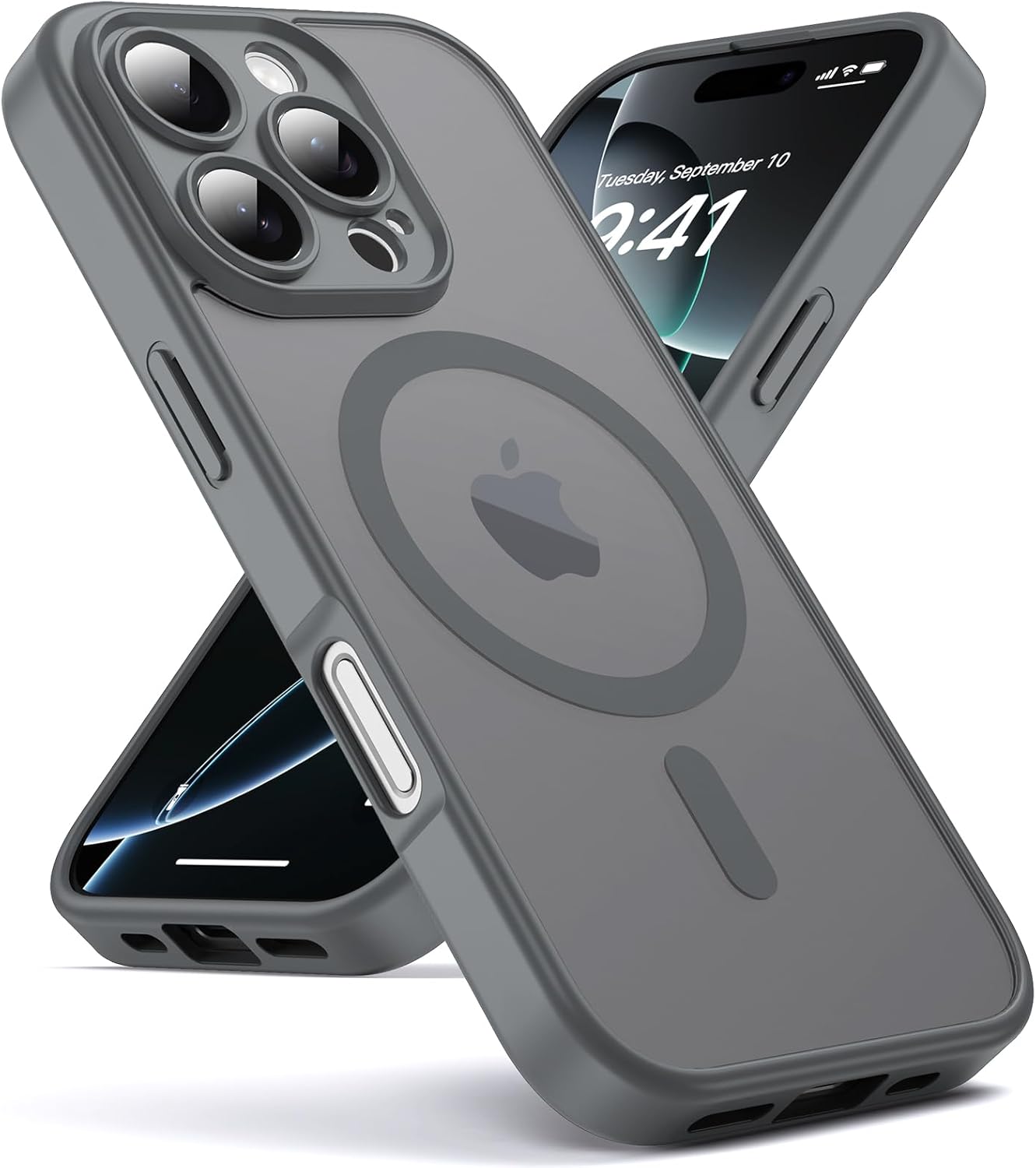 Oududianzi - Кейс за iPhone 16 Pro, Съвместим с Magsafe калъф за мобилен телефон, Прозрачен матов PC гръб TPU силиконов защитен калъф, Защита на камерата, Прозрачен мат, Устойчив на надраскване