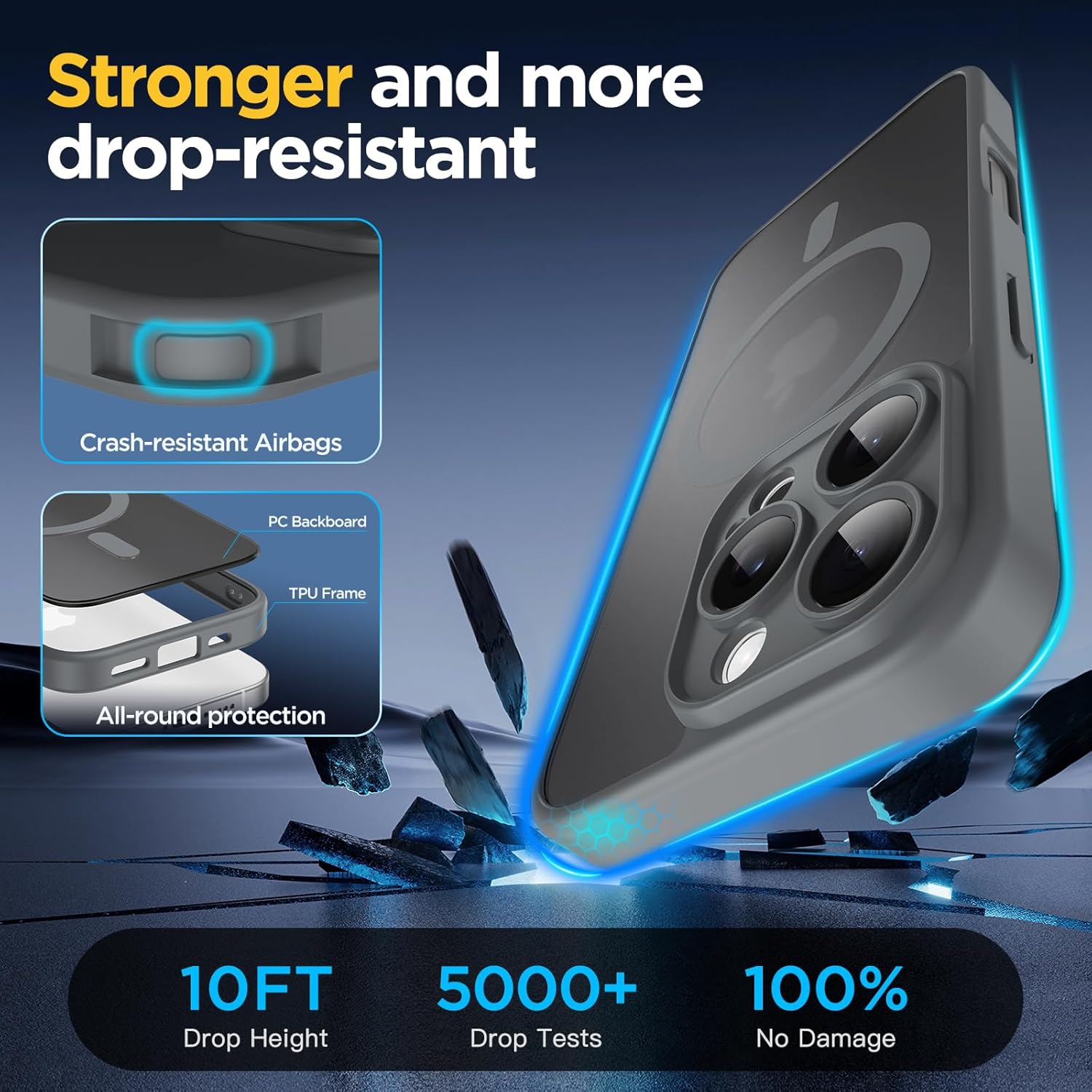 • [Военна защита от падане] Оборудвана с 4 удароустойчиви ъгъла на конструкцията и технология за 360° въздушни възглавници, подсилена с допълнително абсорбиране на удара. Ефективно абсорбира и разпределя силите на удара, като същевременно постига защита от военно ниво, като същевременно запазва лек и тънък профил.