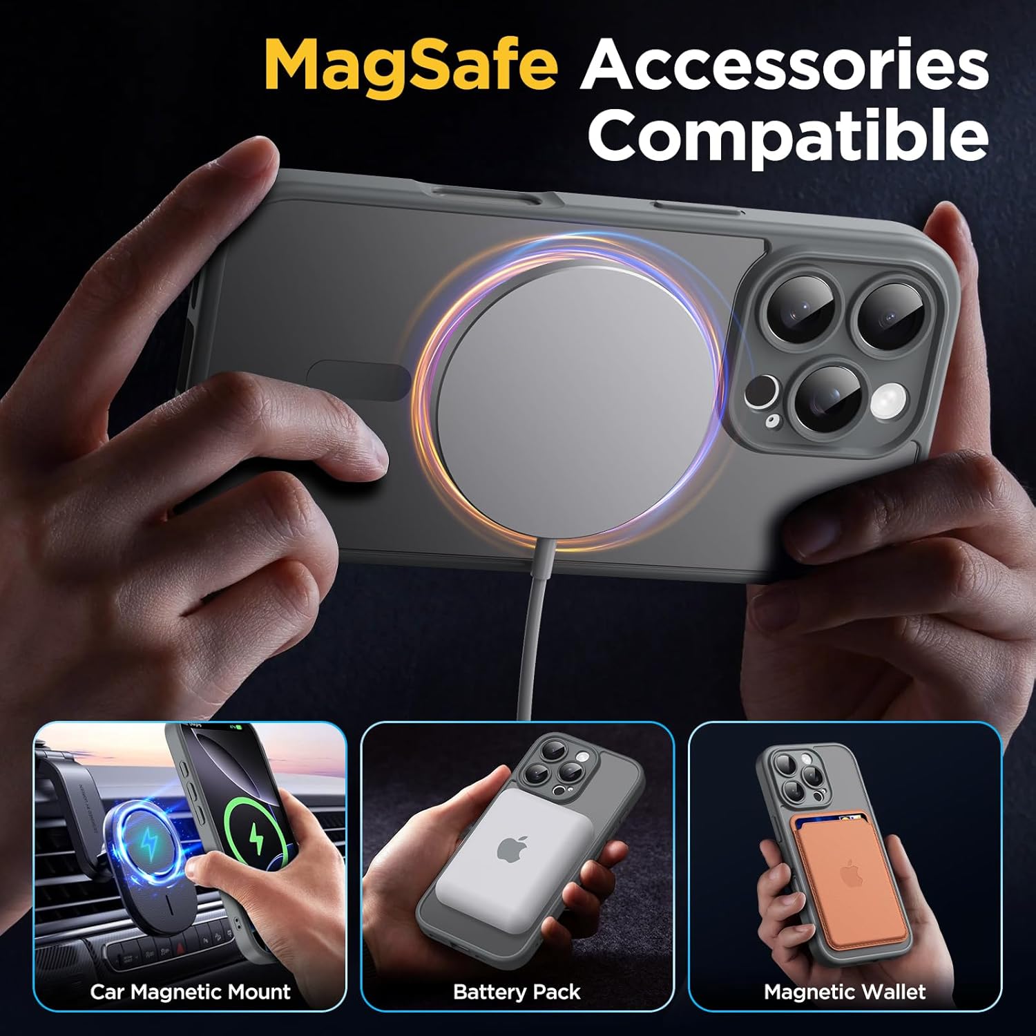 • [Съвместимост] Съвместим само с iPhone 17 Pro с MagSafe. Прецизното изрязване позволява лесен достъп до всички бутони, сензори и камери и осигурява чувствително и ясно тактилно възприятие при натискане на един бутон.