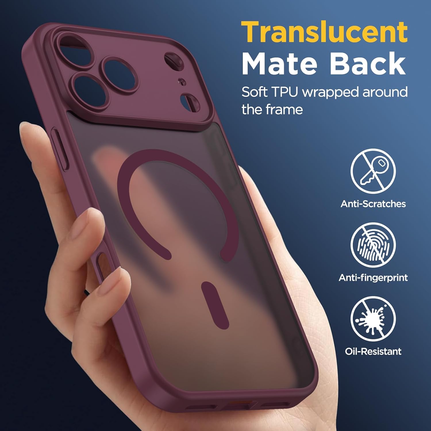 • [Висококачествен матов материал] Състои се от матов PC заден панел и гъвкава TPU рамка. Полупрозрачният матов гръб придава на телефона ви мистериозен и стилен дизайн. Оборудван с нано-олеофобно покритие, което ефективно отблъсква пръстови отпечатъци, водни петна, маслени следи и прах.