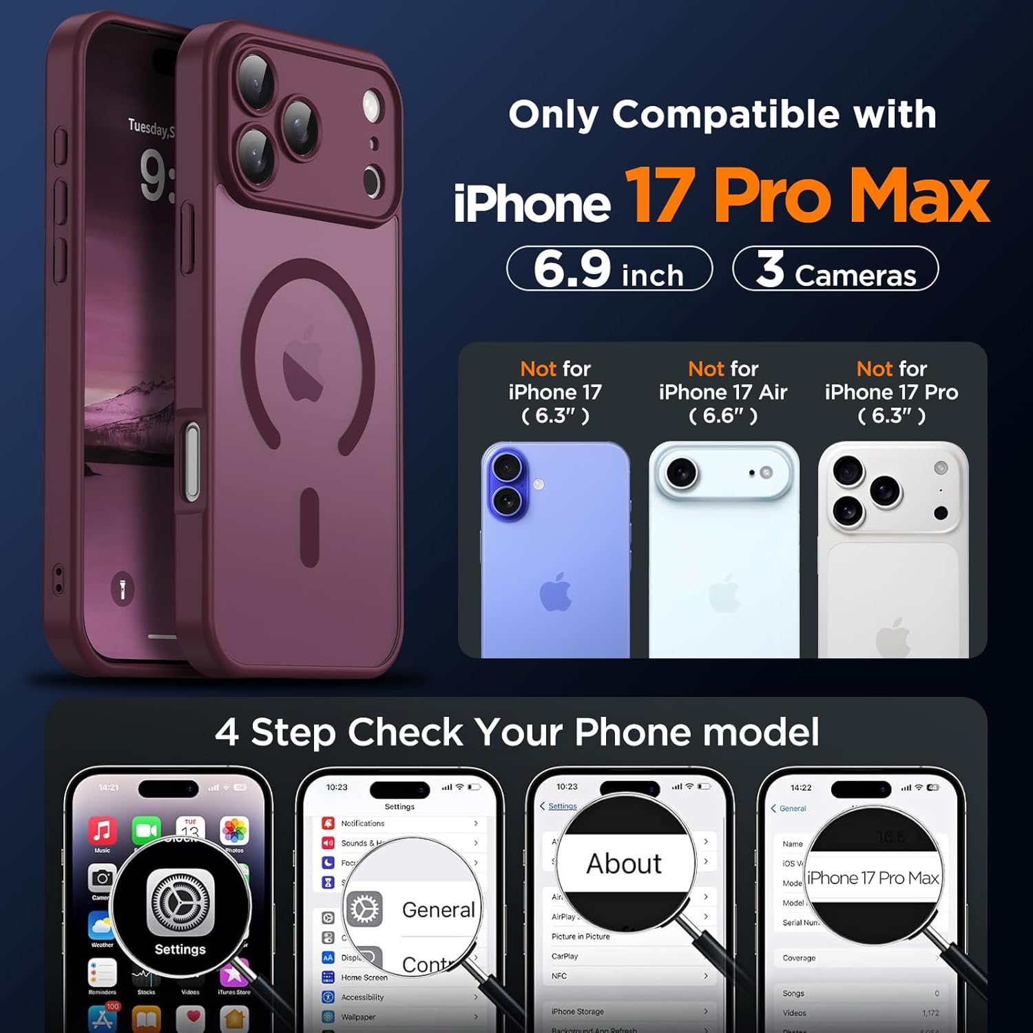 • [Съвместимост] Съвместим само с iPhone 17 Pro с MagSafe. Прецизното изрязване позволява лесен достъп до всички бутони, сензори и камери и осигурява чувствително и ясно тактилно възприятие при натискане на един бутон.