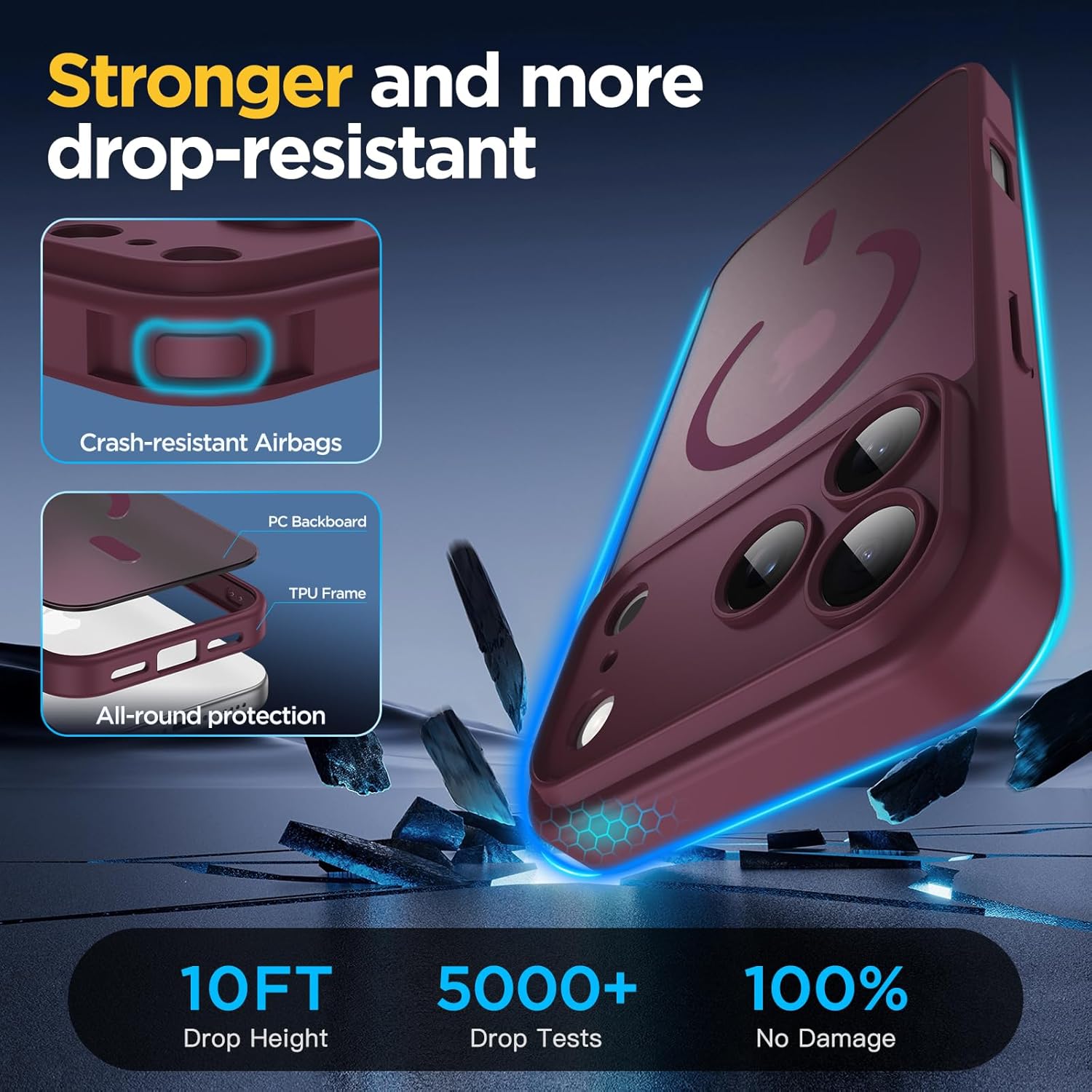 • [Военна защита от падане] Оборудвана с 4 удароустойчиви ъгъла на конструкцията и технология за 360° въздушни възглавници, подсилена с допълнително абсорбиране на удара. Ефективно абсорбира и разпределя силите на удара, като същевременно постига защита от военно ниво, като същевременно запазва лек и тънък профил.