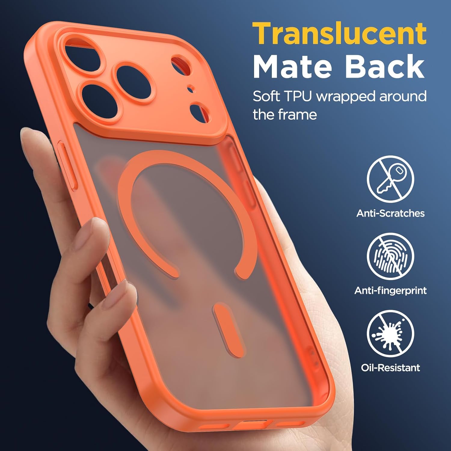 • [Висококачествен матов материал] Състои се от матов PC заден панел и гъвкава TPU рамка. Полупрозрачният матов гръб придава на телефона ви мистериозен и стилен дизайн. Оборудван с нано-олеофобно покритие, което ефективно отблъсква пръстови отпечатъци, водни петна, маслени следи и прах.