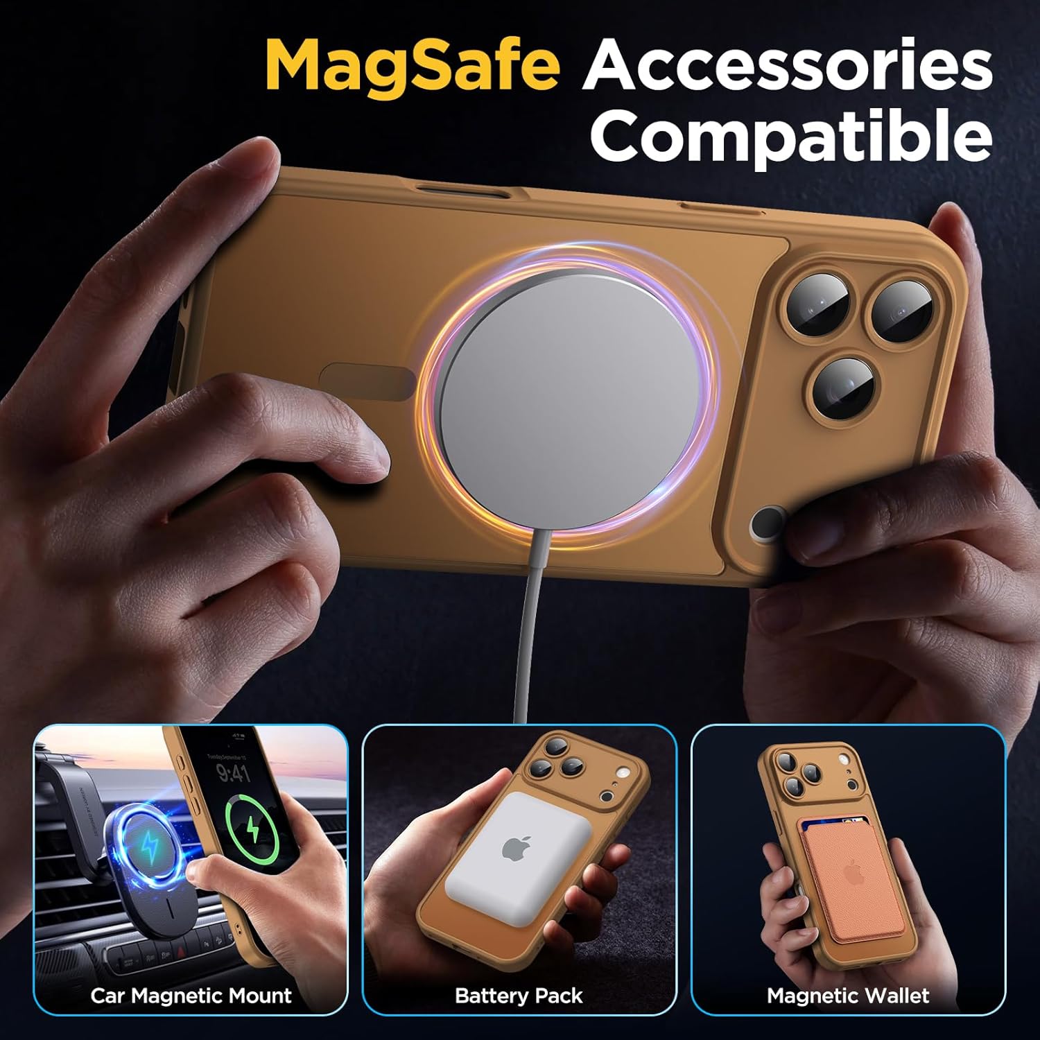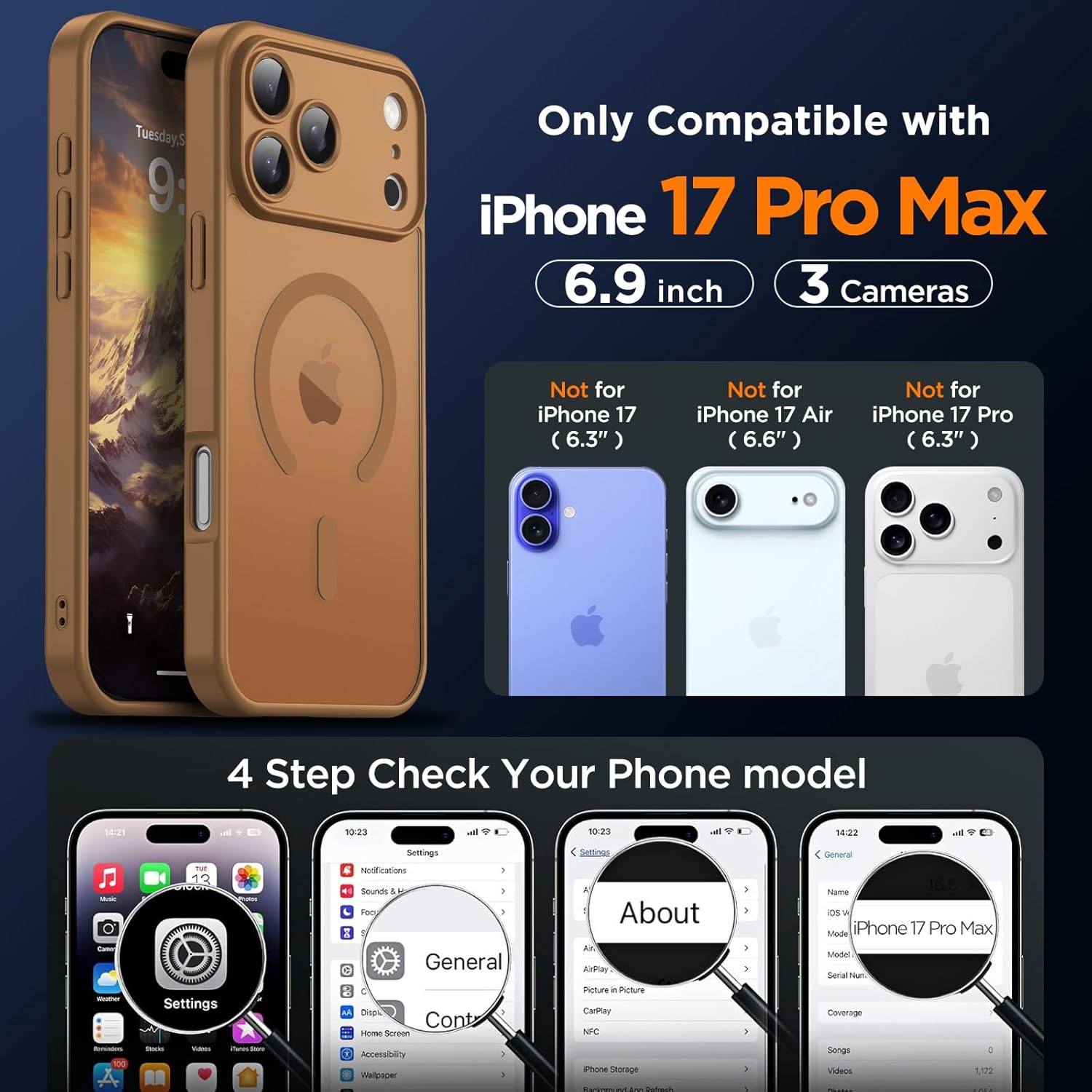 • [Съвместимост] Съвместим само с iPhone 17 Pro с MagSafe. Прецизното изрязване позволява лесен достъп до всички бутони, сензори и камери и осигурява чувствително и ясно тактилно възприятие при натискане на един бутон.
