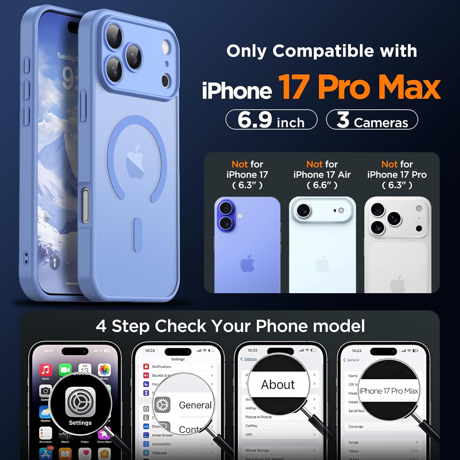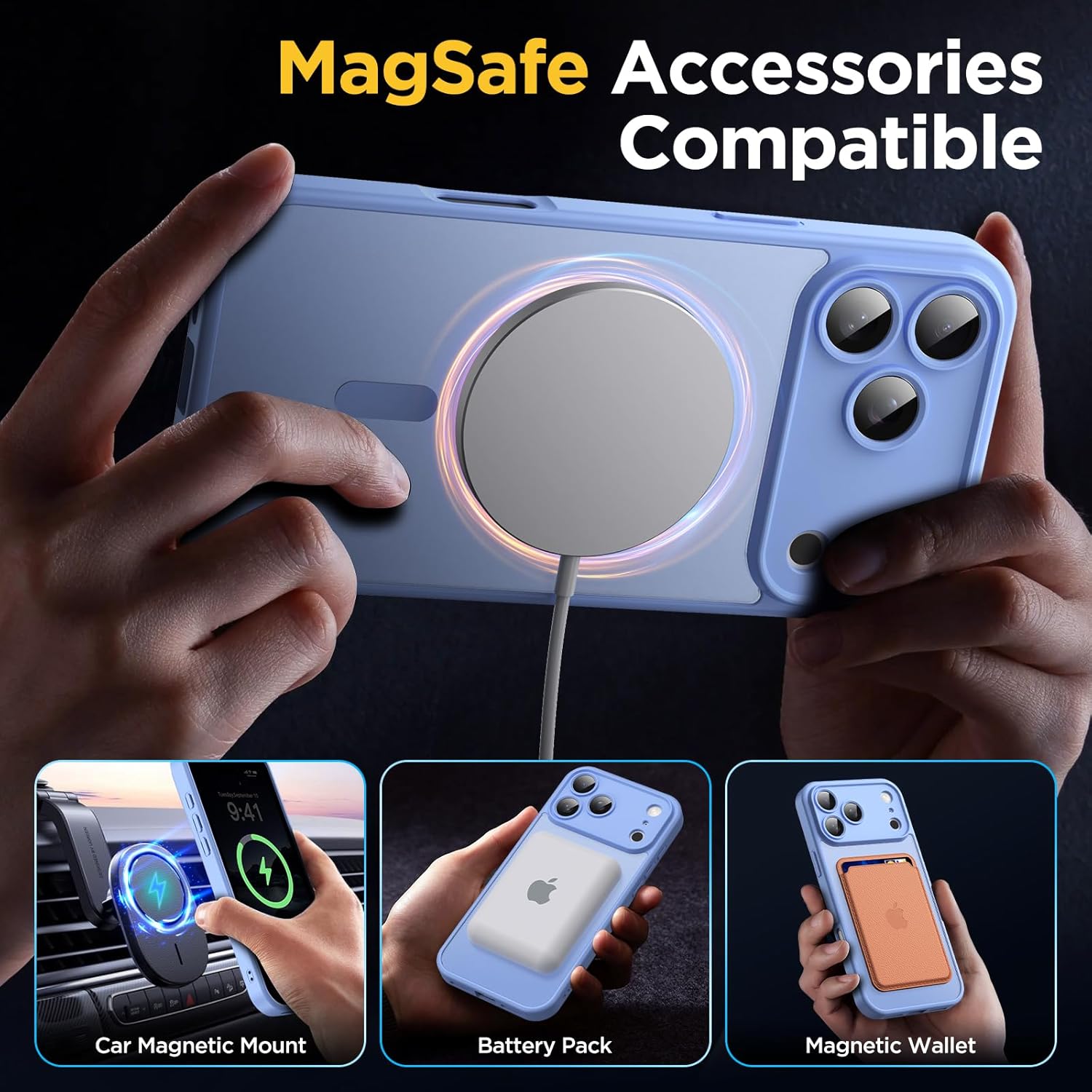 • [Съвместимост] Съвместим само с iPhone 17 Pro с MagSafe. Прецизното изрязване позволява лесен достъп до всички бутони, сензори и камери и осигурява чувствително и ясно тактилно възприятие при натискане на един бутон.