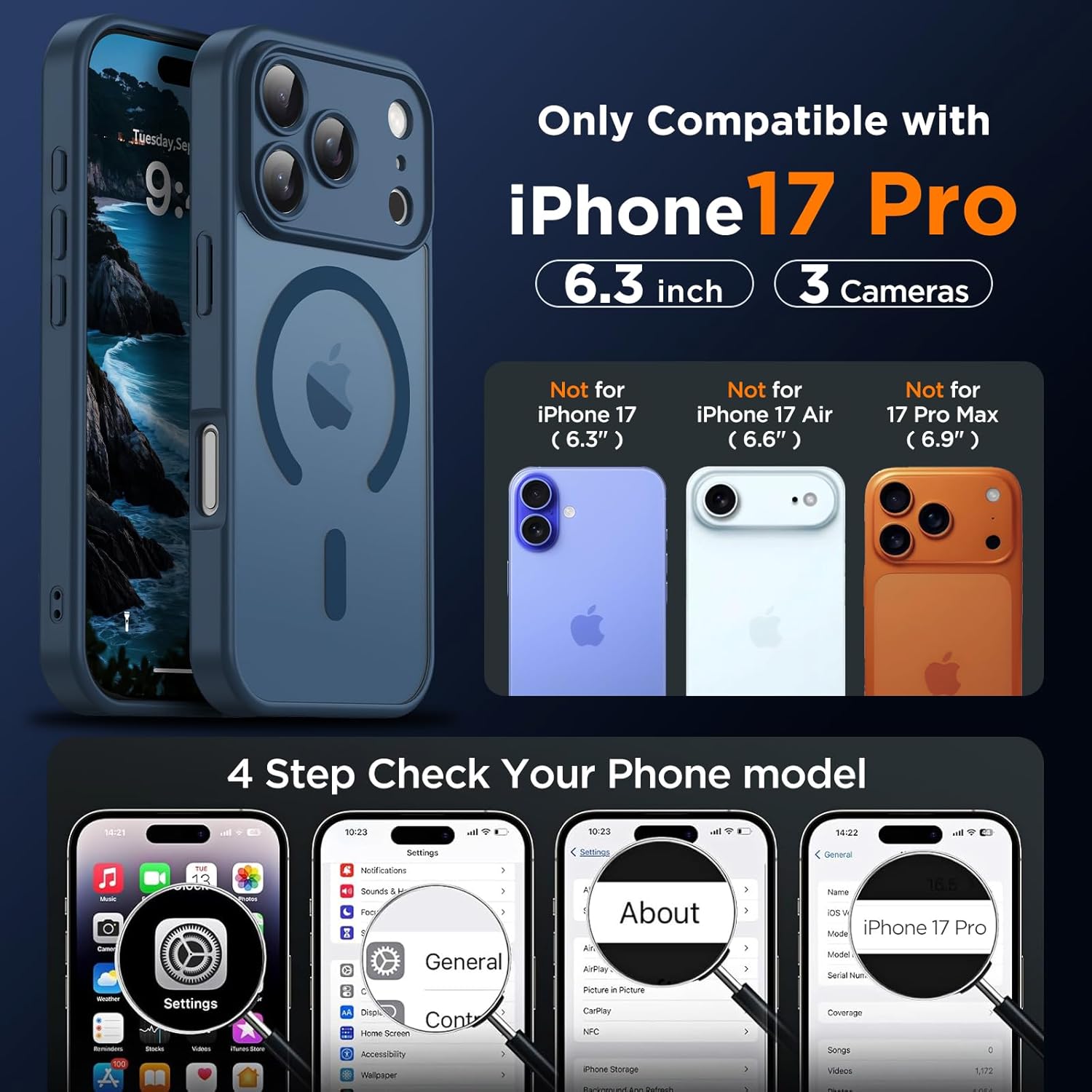 • [Съвместимост] Съвместим само с iPhone 17 Pro с MagSafe. Прецизното изрязване позволява лесен достъп до всички бутони, сензори и камери и осигурява чувствително и ясно тактилно възприятие при натискане на един бутон.