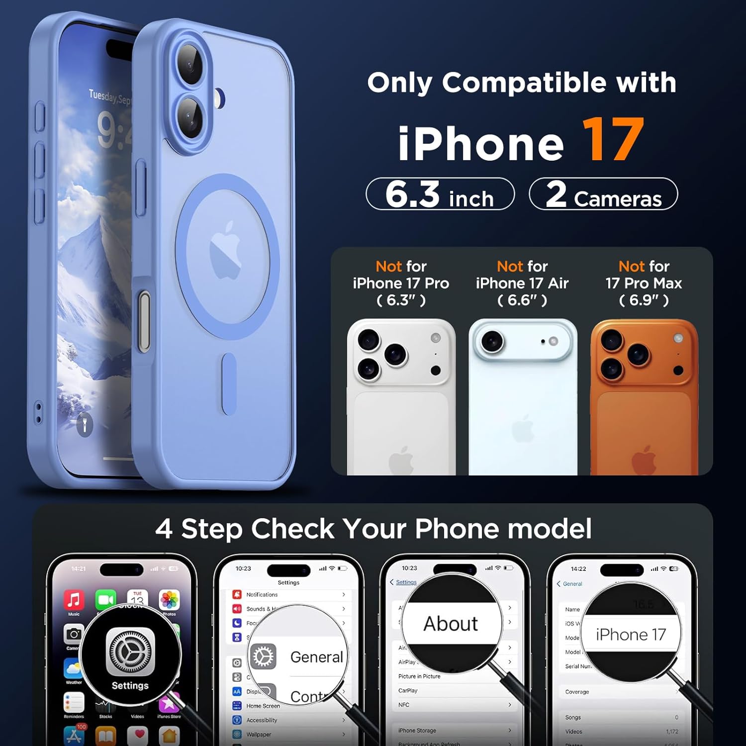 Oududianzi - Кейс за iPhone 17, Съвместим с Magsafe калъф за мобилен телефон, Прозрачен матов PC гръб TPU силиконов защитен калъф, Защита на камерата, Прозрачен мат, Устойчив на надраскване