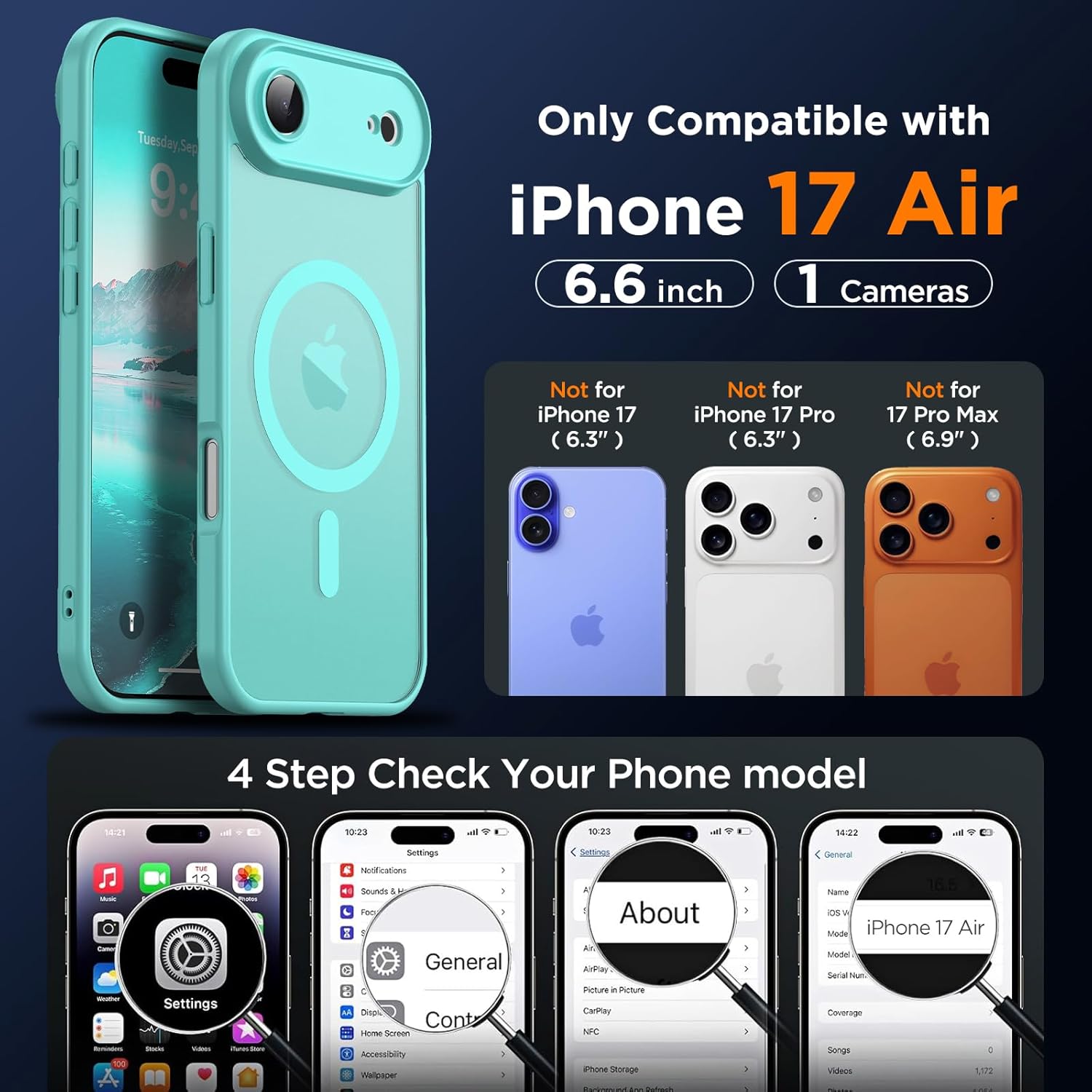 Oududianzi - Кейс за iPhone Air, съвместим с Magsafe, калъф за мобилен телефон, прозрачен матов PC гръб, TPU силиконов защитен калъф, защита на камерата, прозрачен матов, устойчив на надраскване