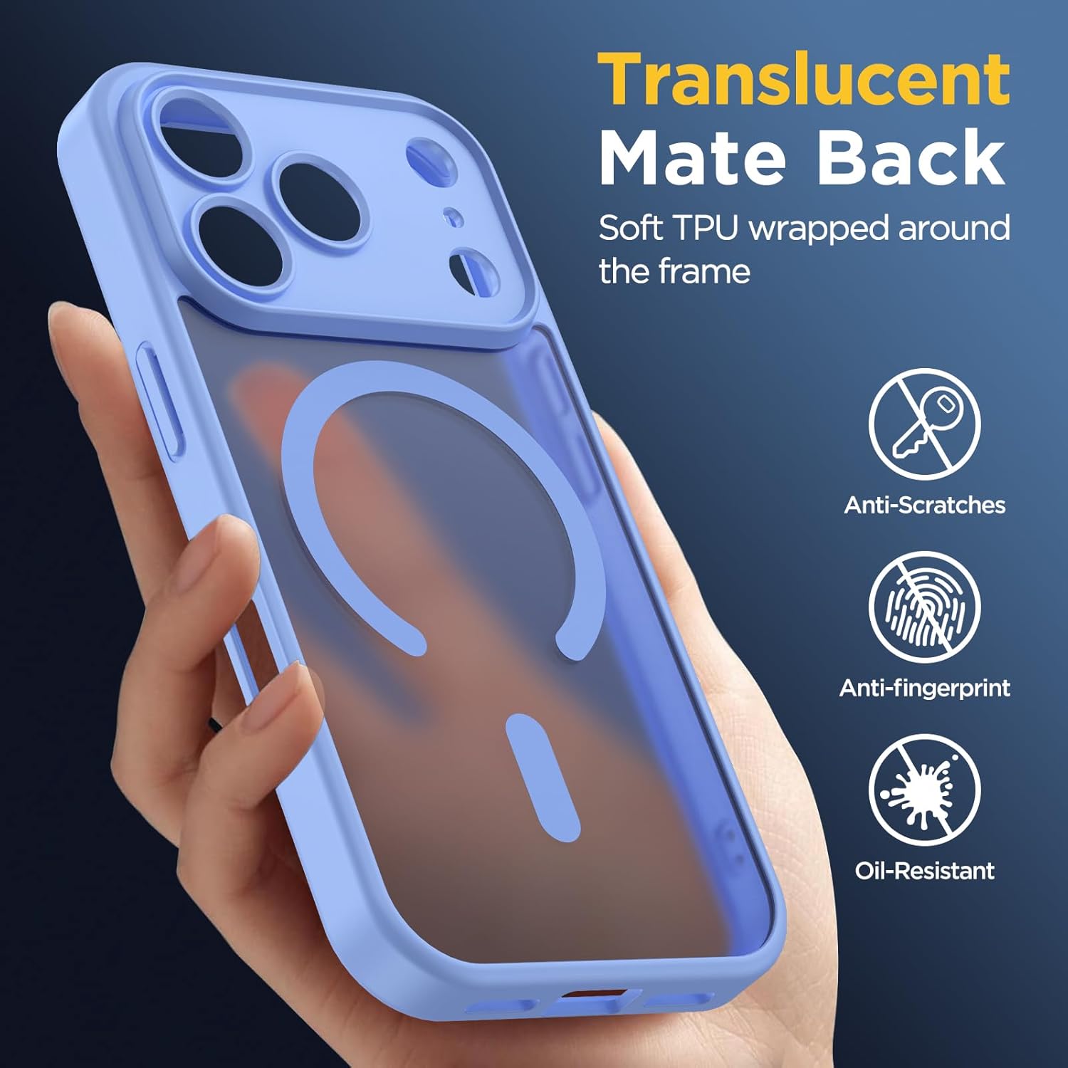 Oududianzi - Кейс за телефон 17 Pro, Съвместим с Magsafe калъф за мобилен телефон, Прозрачен матов PC гръб TPU силиконов защитен калъф, Защита на камерата, Прозрачен мат, Устойчив на надраскване