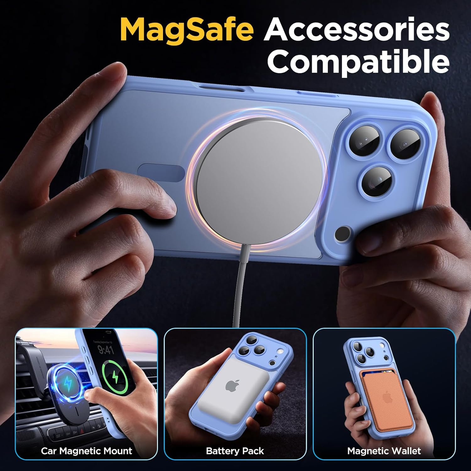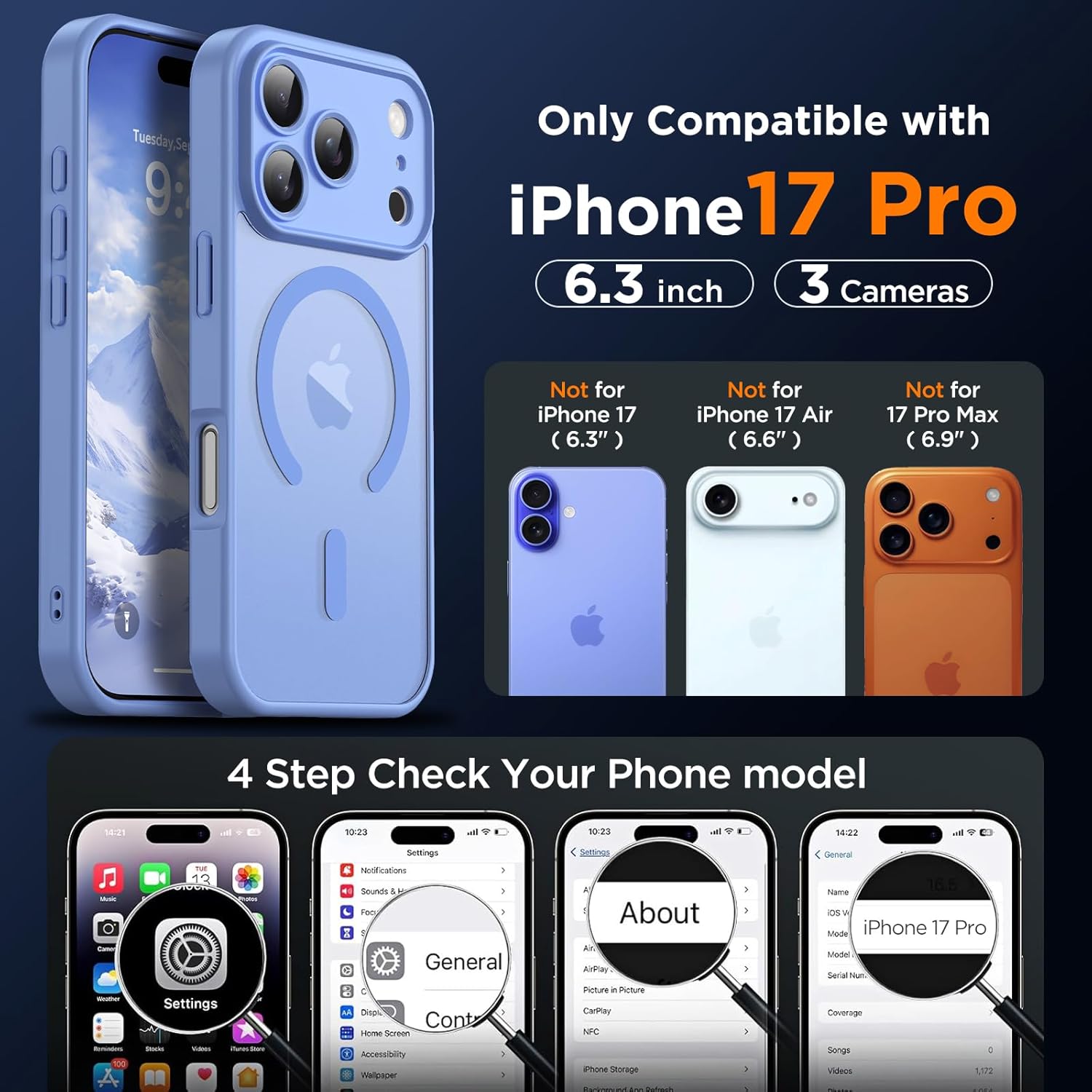 • [Съвместимост] Съвместим само с iPhone 17 Pro с MagSafe. Прецизното изрязване позволява лесен достъп до всички бутони, сензори и камери и осигурява чувствително и ясно тактилно възприятие при натискане на един бутон.