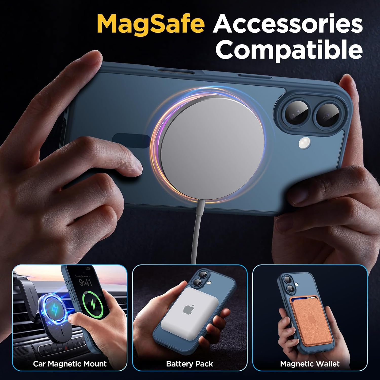 • Функция за магнитно засмукване: Мощният вграден магнит подобрява магнитната връзка и осигурява автоматично подравняване, като е съвместим с всички аксесоари MagSafe, като например магнитни зарядни устройства с вендуза, магнитни пакети с вендуза, магнитни държачи с вендуза и други. Независимо дали сте в ежедневието или пътувате, можете да се насладите на практичността, която калъфът носи със себе си.