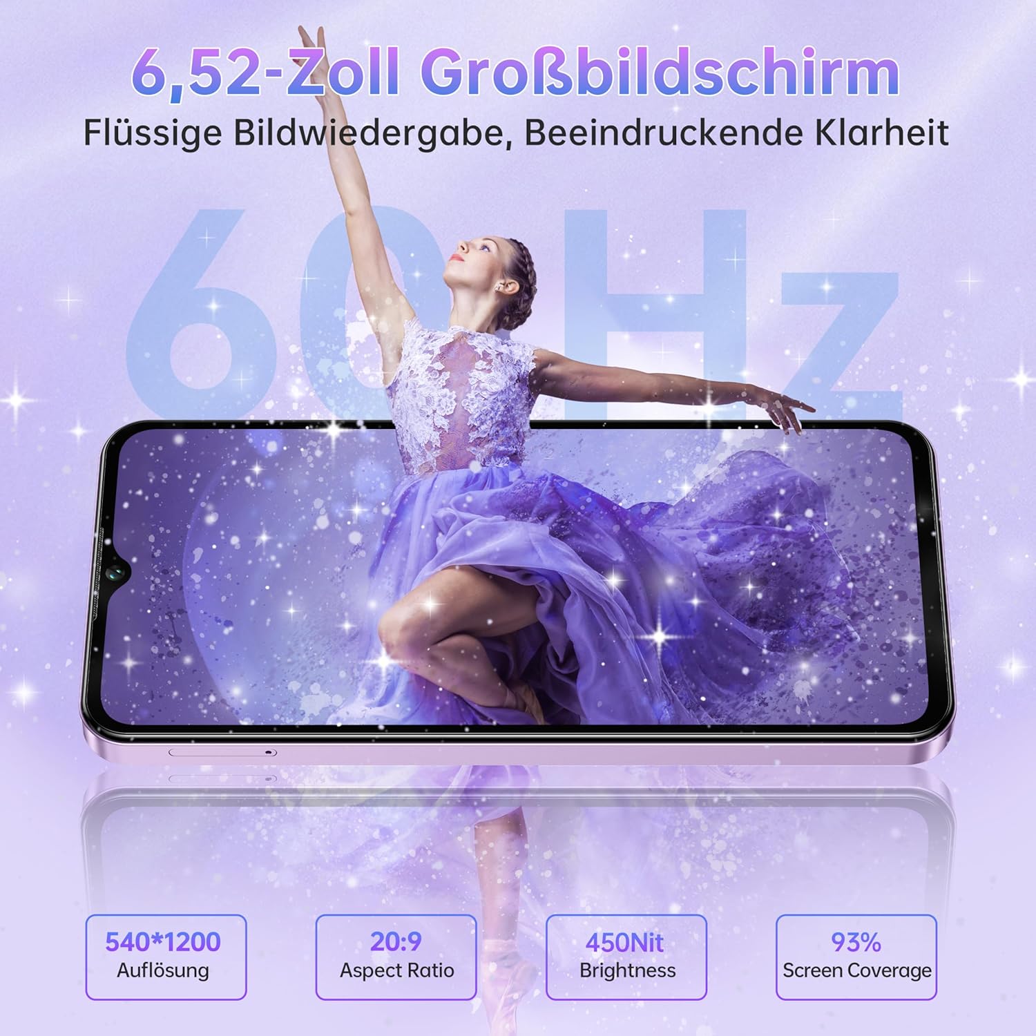 • 6,52-инчов голям екран: мобилният телефон OUKITEL C2 без договор има 6,52-инчов дисплей с резолюция 540 x 1200, който предлага ясни и детайлни изображения, както и автентично възпроизвеждане на цветовете. С яркост до 450 нита, съдържанието на екрана остава лесно за четене дори на пряка слънчева светлина. Независимо дали сърфирате в интернет, гледате видеоклипове или използвате различни приложения, той осигурява приятно визуално изживяване.