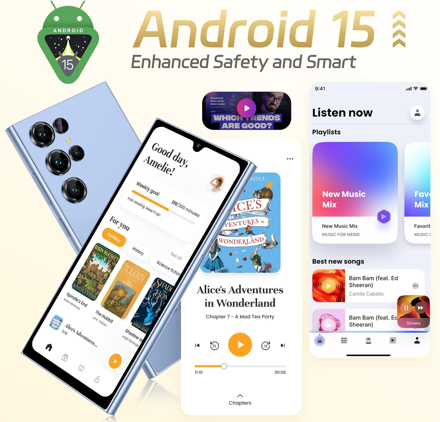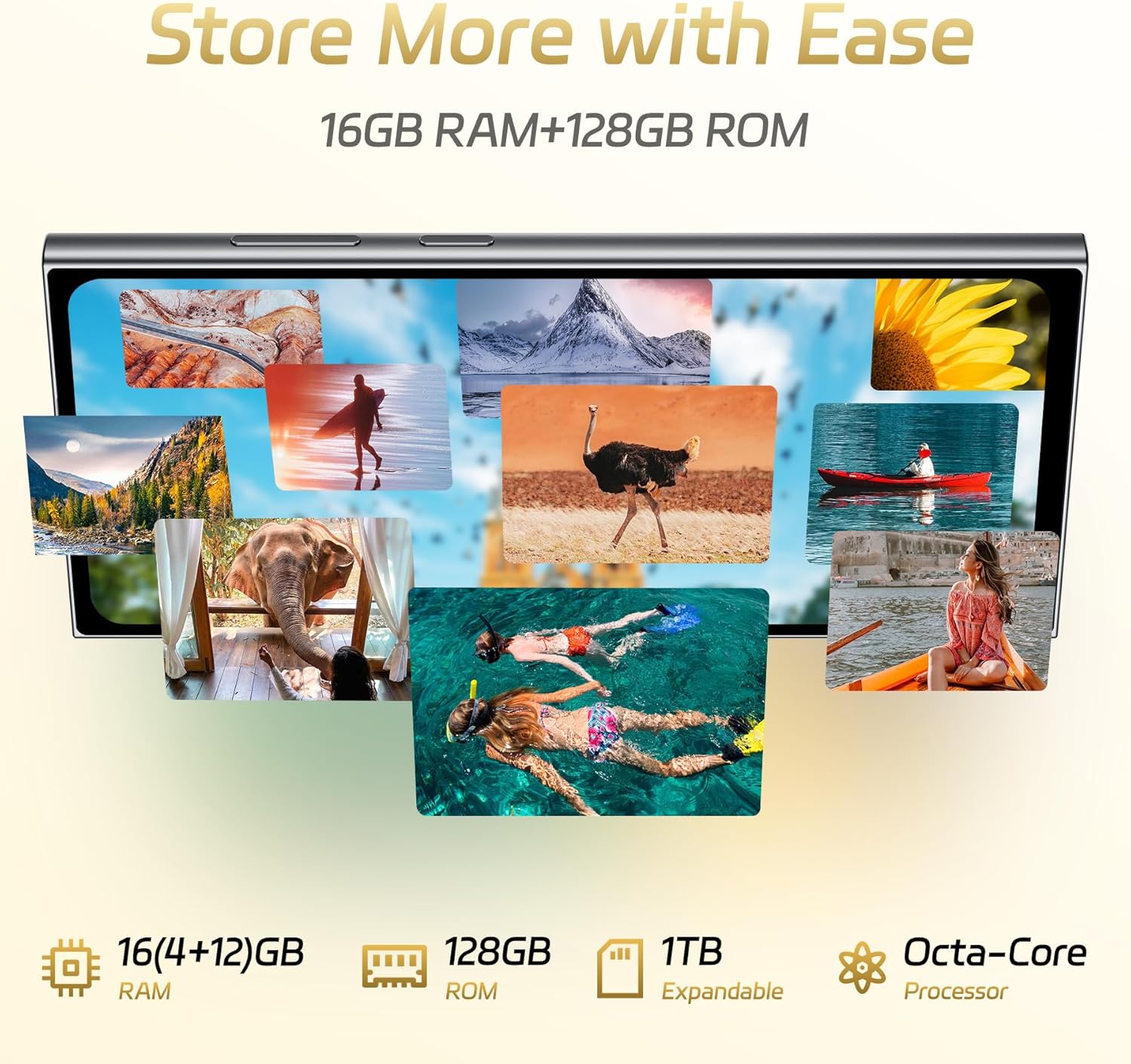 • Numerous functions for your needs: the elegant dual SIM mobile phone cheap C61 is very slim at only 216 g and sits comfortably in the hand. Supports GPS+Glonass+Galileo+Beidou, always provides you with an accurate position so you can enjoy it in your own comfort zone. It also provides a face unlock function, which is a fast, safe and convenient interface for your daily life. This stylish Android 15 smartphone is the perfect gift for family and friends and must not be missed.