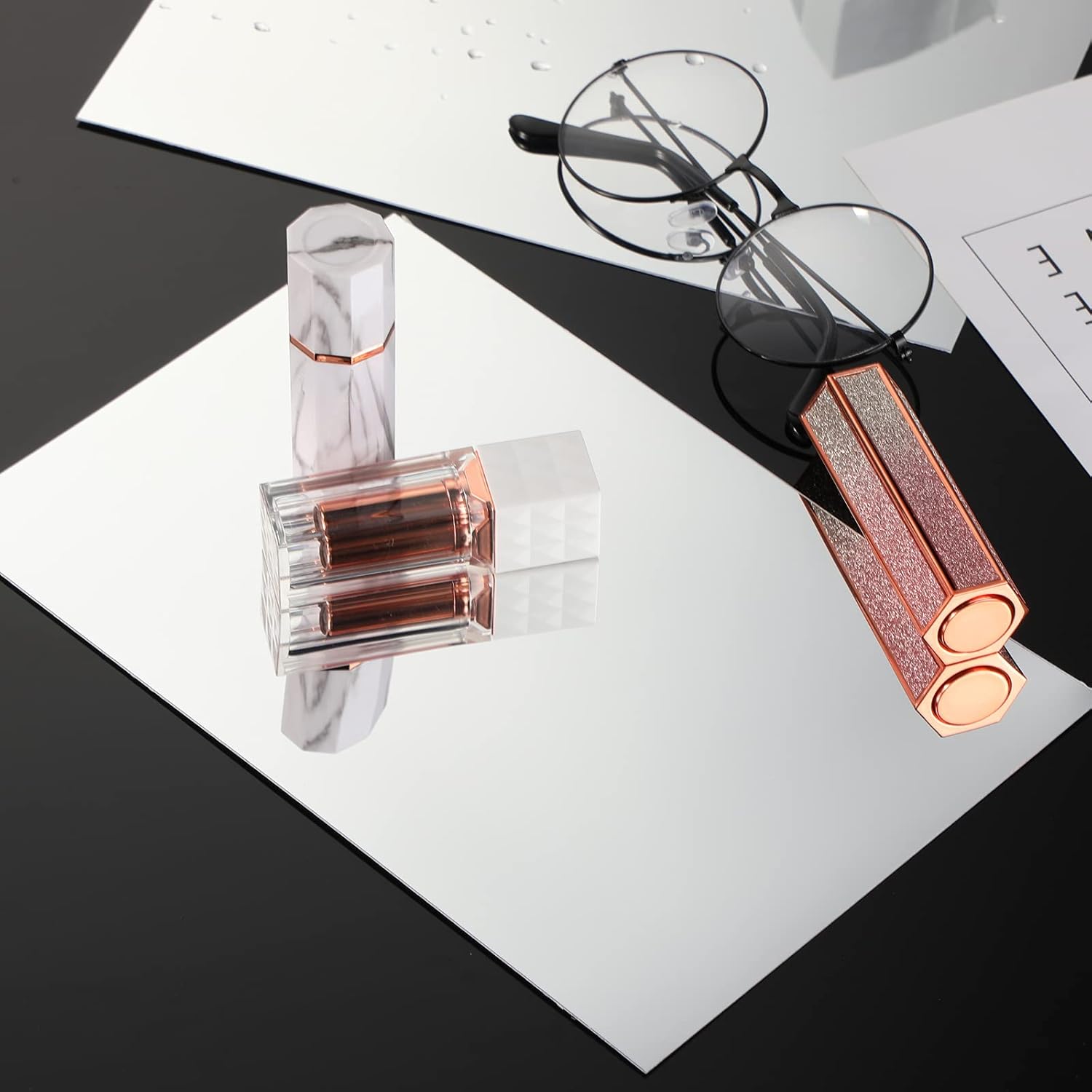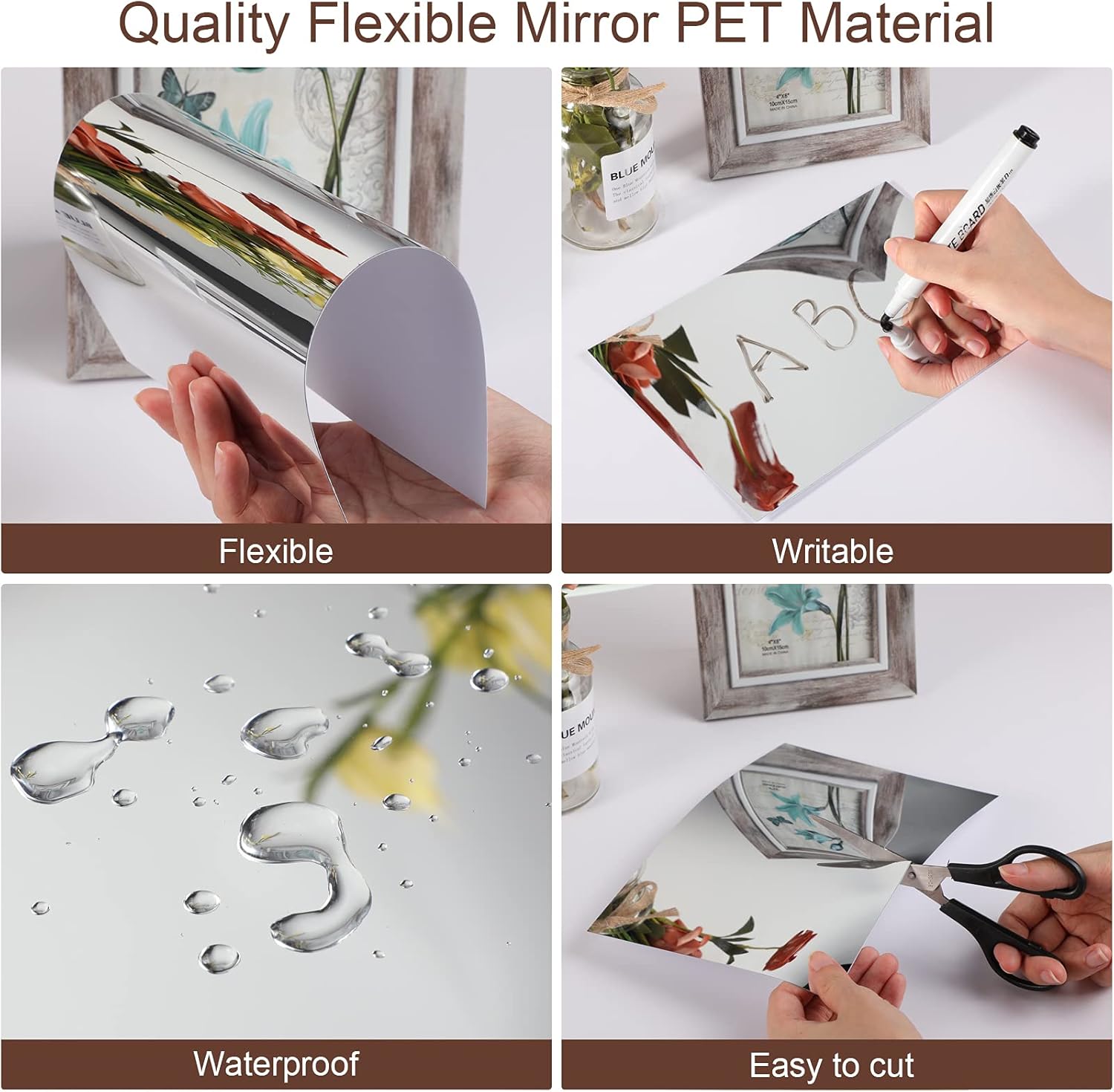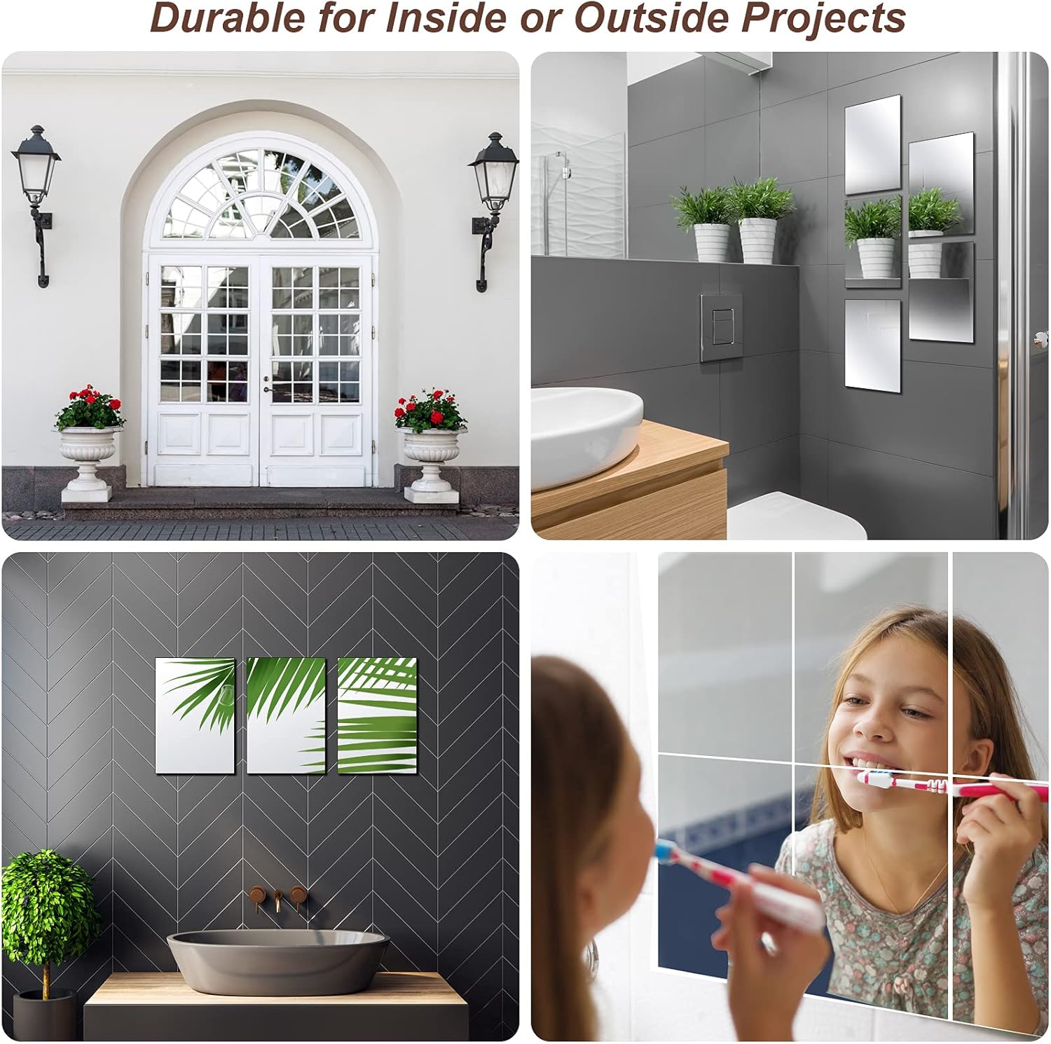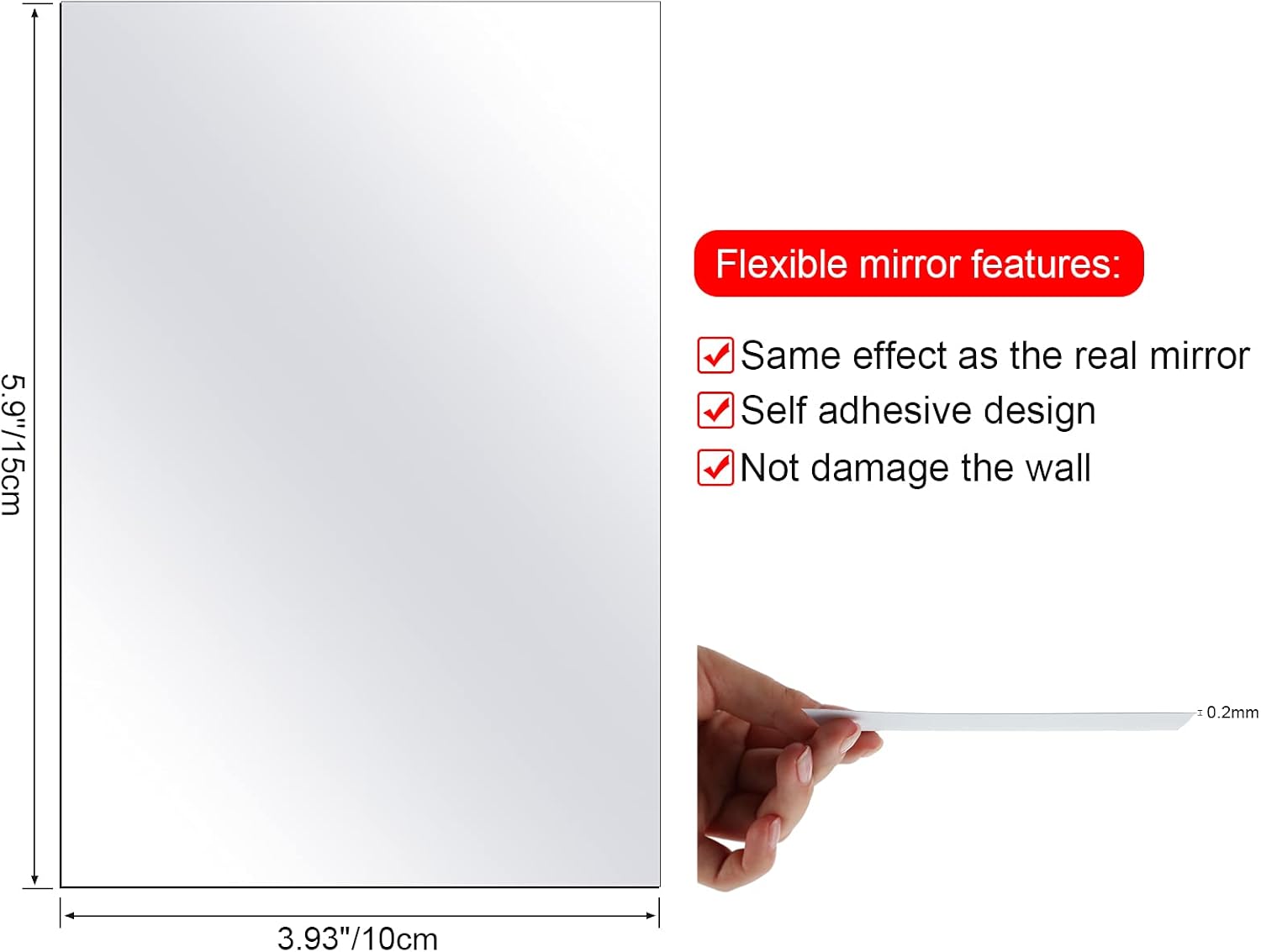 • Outus 30 броя огледални листове, самозалепващи се, гъвкави, без стъкло, огледални плочки, стикер за стена с огледало за домашен декор за баня (5,9 x 3,9 инча)