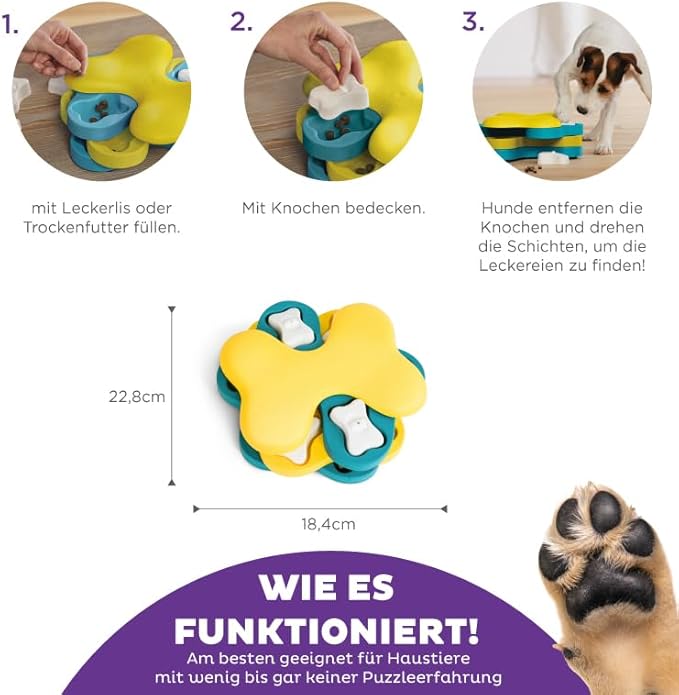 • Игриво предизвикателство: Мултипъзелът е най-взискателната ни играчка за интелигентност досега. Тази игра за мислене изисква кучето да изпълни няколко стъпки в правилния ред.
