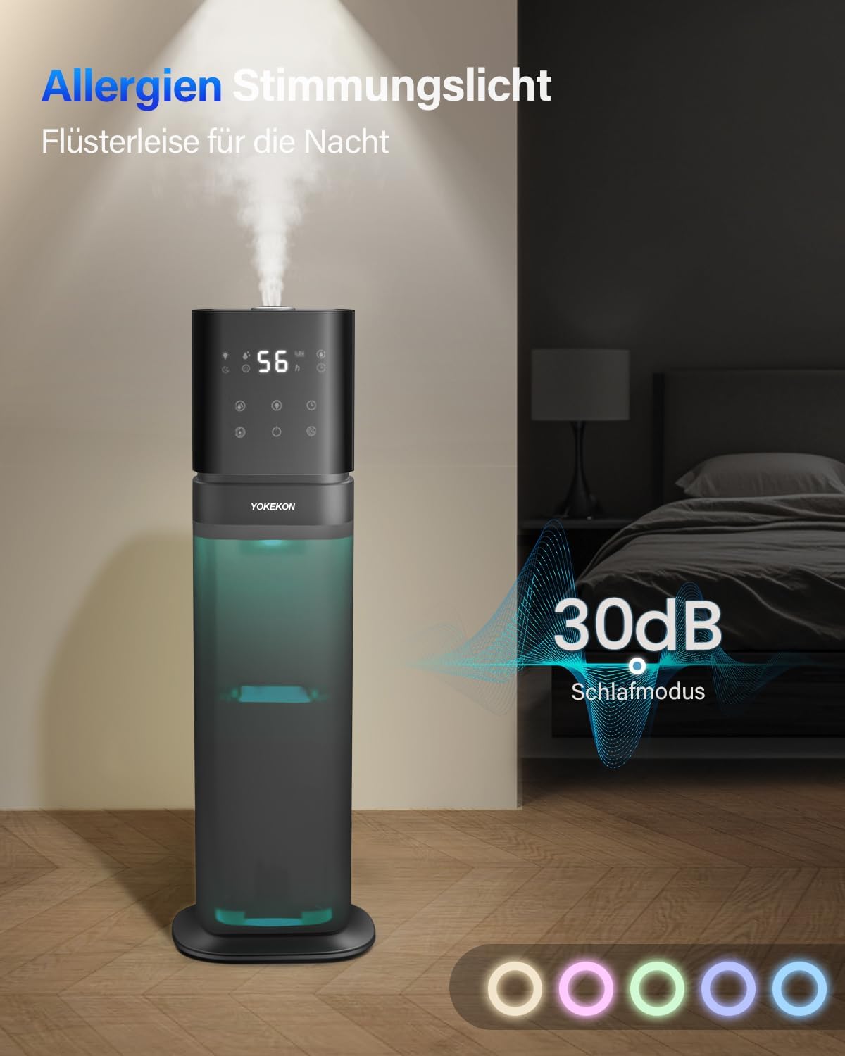 • 【5-цветни светлини & режим на сън & 12-часов таймер】: Нашият овлажнител е оборудван с 5-цветна LED нощна светлина, която нежно променя цветовете си и създава релаксираща атмосфера за по-добър сън. С обем по-малък от 35 dB, бебешкият овлажнител е идеален за детската стая. Практичният режим на сън с едно докосване изключва всички светлини, така че можете да овлажните спалнята си, без да нарушавате съня си. Sanlight.