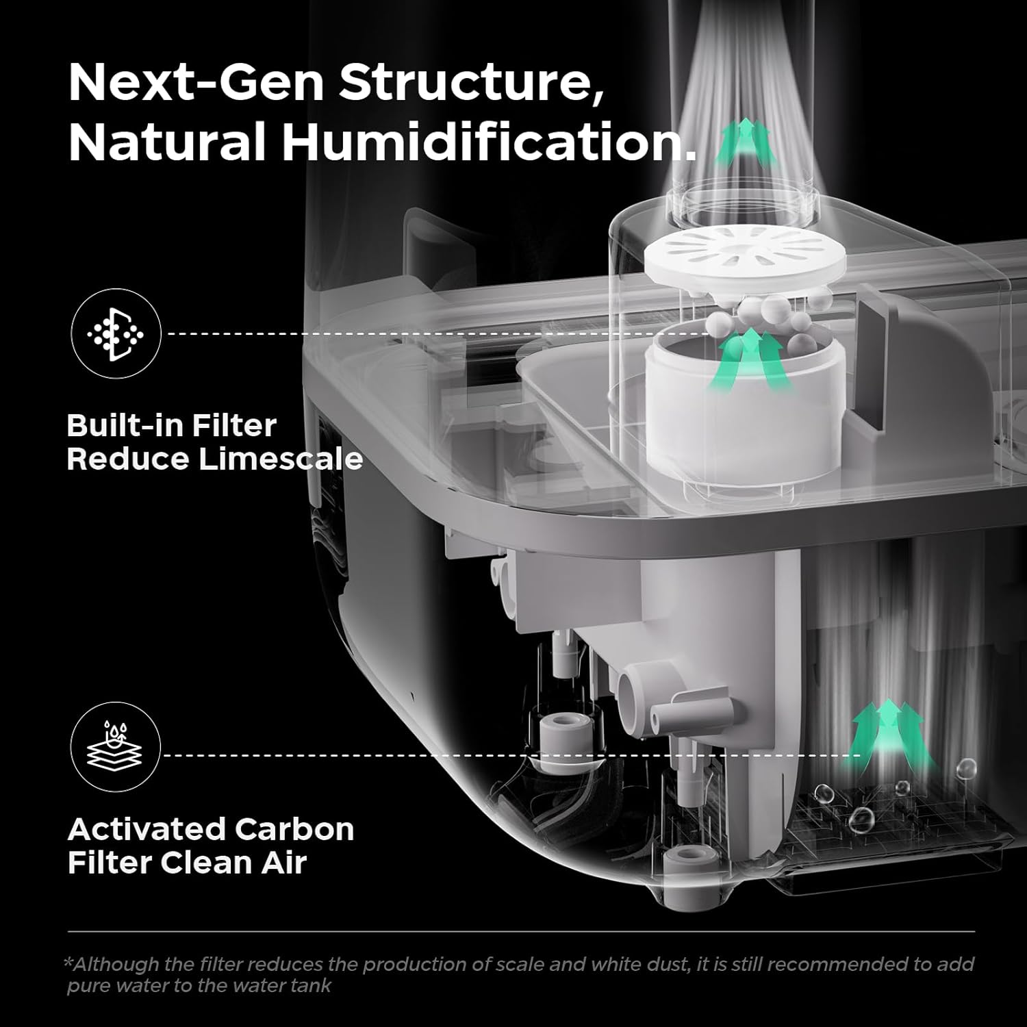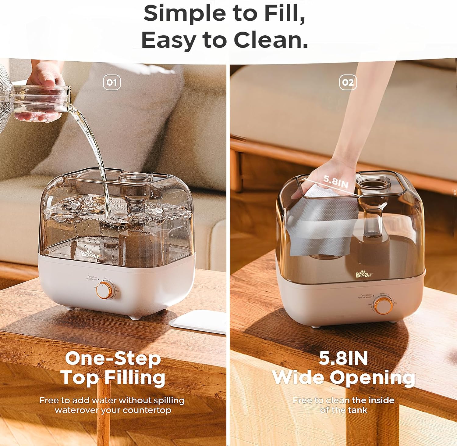 Овлажнителят Bear за спалня, голяма стая, домашен офис и детска стая на бебето, овлажнява въздуха с по-ниско ниво на шум от не повече от 28 dB, което създава комфортна среда, за да гарантира, че вашето семейство се чувства комфортно.