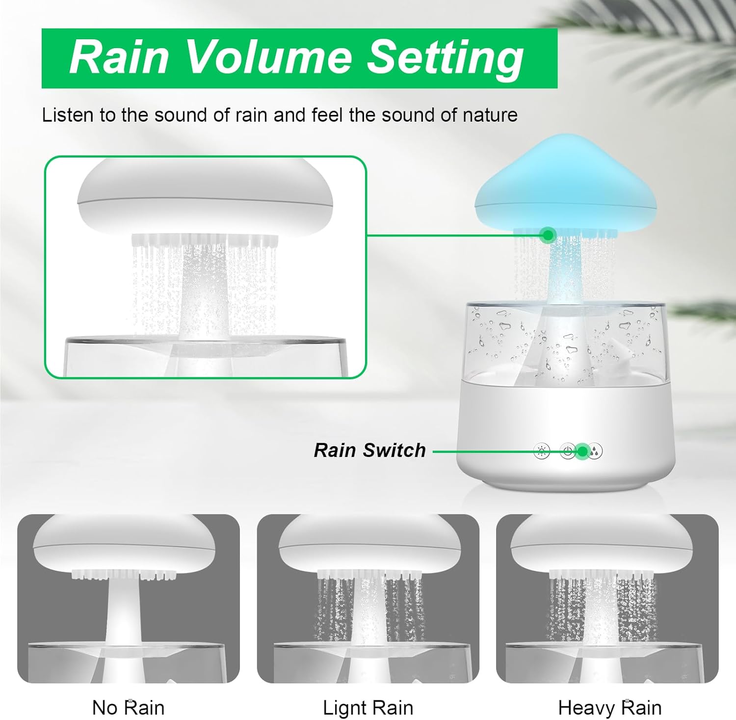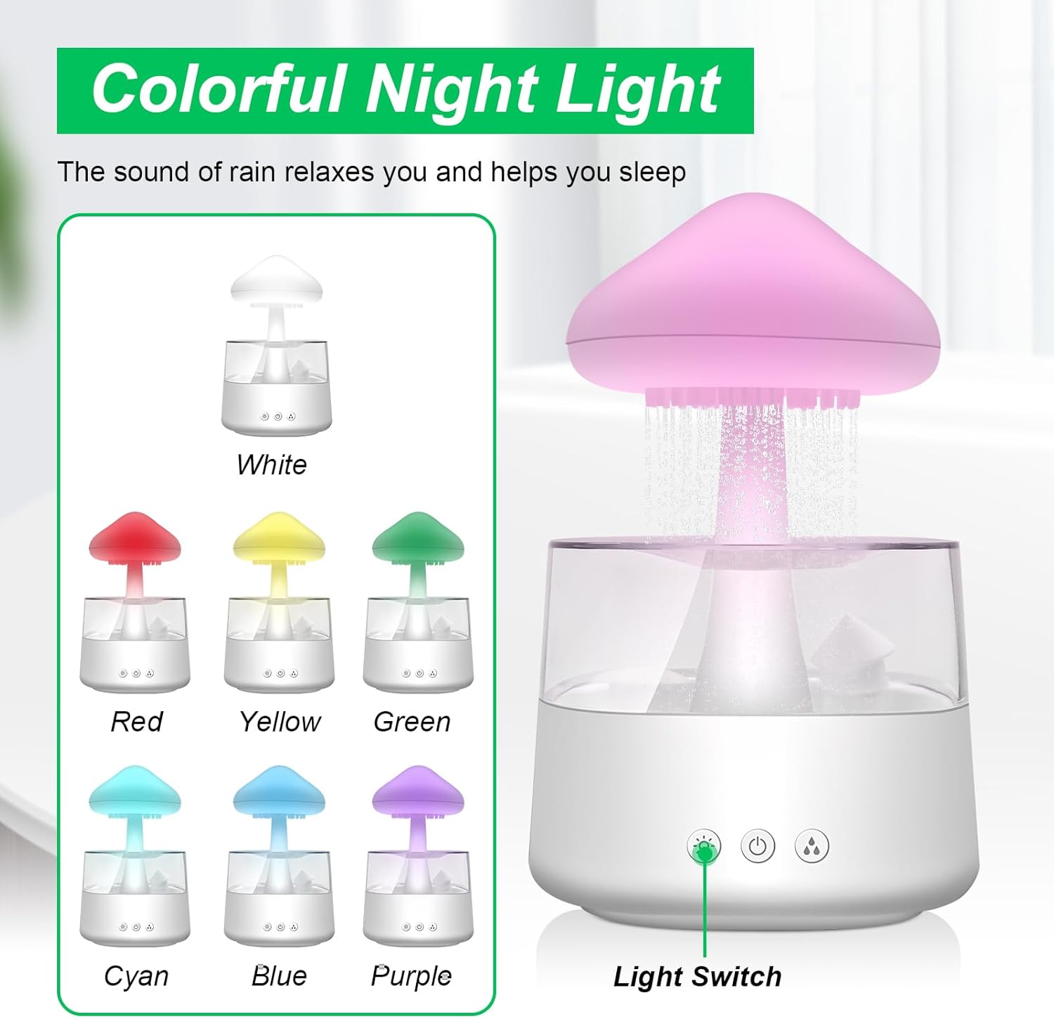 Овлажнител Rain-Cloud, 450 мл, Овлажнител Rain Clouds с 3 режима и 7 цвята, LED светлини, Арома дифузер, Нано мъгла, лампа Rain-Gub за детска стая, спалня, дом, офис (бял)