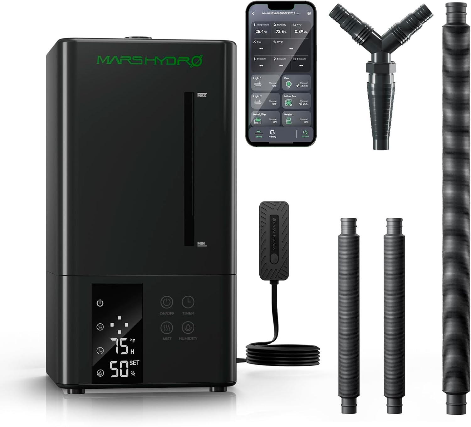 Овлажнител за растения MARS HYDRO 6L, с регулируема влажност, функция таймер, ултразвукова прецизна и безшумна работа, уплътнение против течове за палатка за отглеждане, за оранжерия, спалня