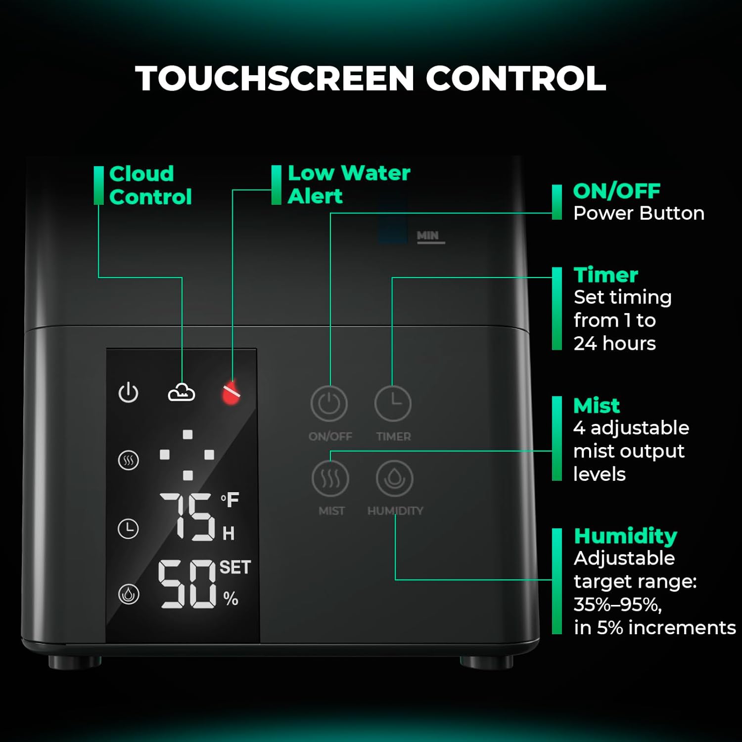 • Постоянно овлажняване с регулируемо време: Вградената 12-часова функция за таймер предлага 1–4 нива за настройване на количеството мъгла, а влажността може да се регулира от 35% до 95%. Поддържайте овлажнителя работещ на зададеното ниво на влажност за определен период от време, за да автоматизирате процеса и да спестите време. Регулирайте идеалната влажност за вашите растения.
