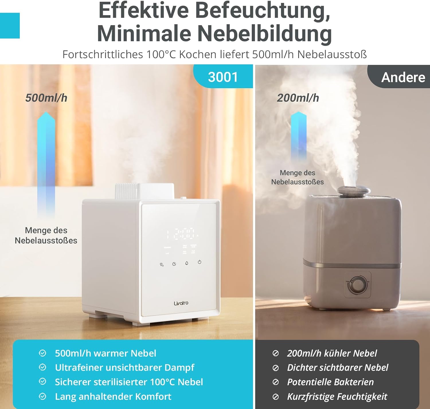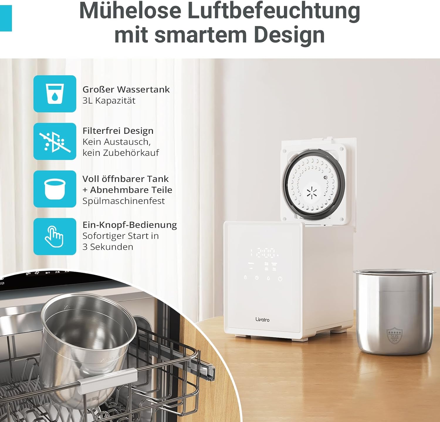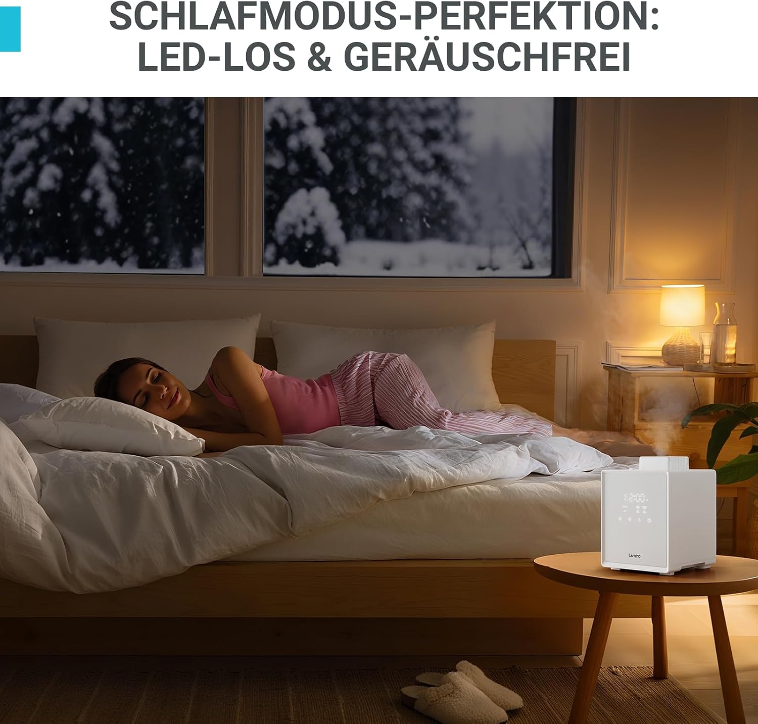 Овлажнител за спалня с горно пълнене, 3 л овлажнител с топла мъгла от неръждаема стомана, намалява 99,97% от бактериите, за спалня и хол, овлажнител, подходящ за съдомиялна машина, с режим на заспиване