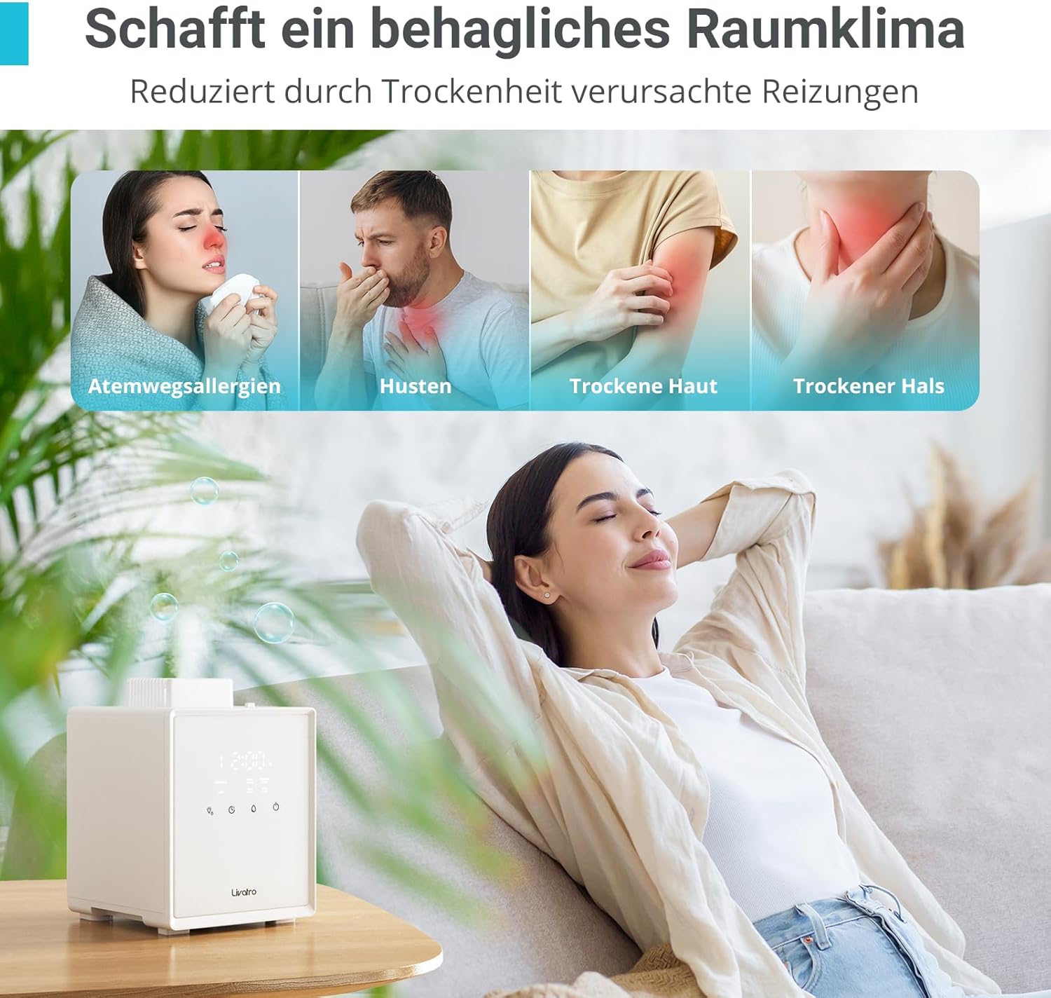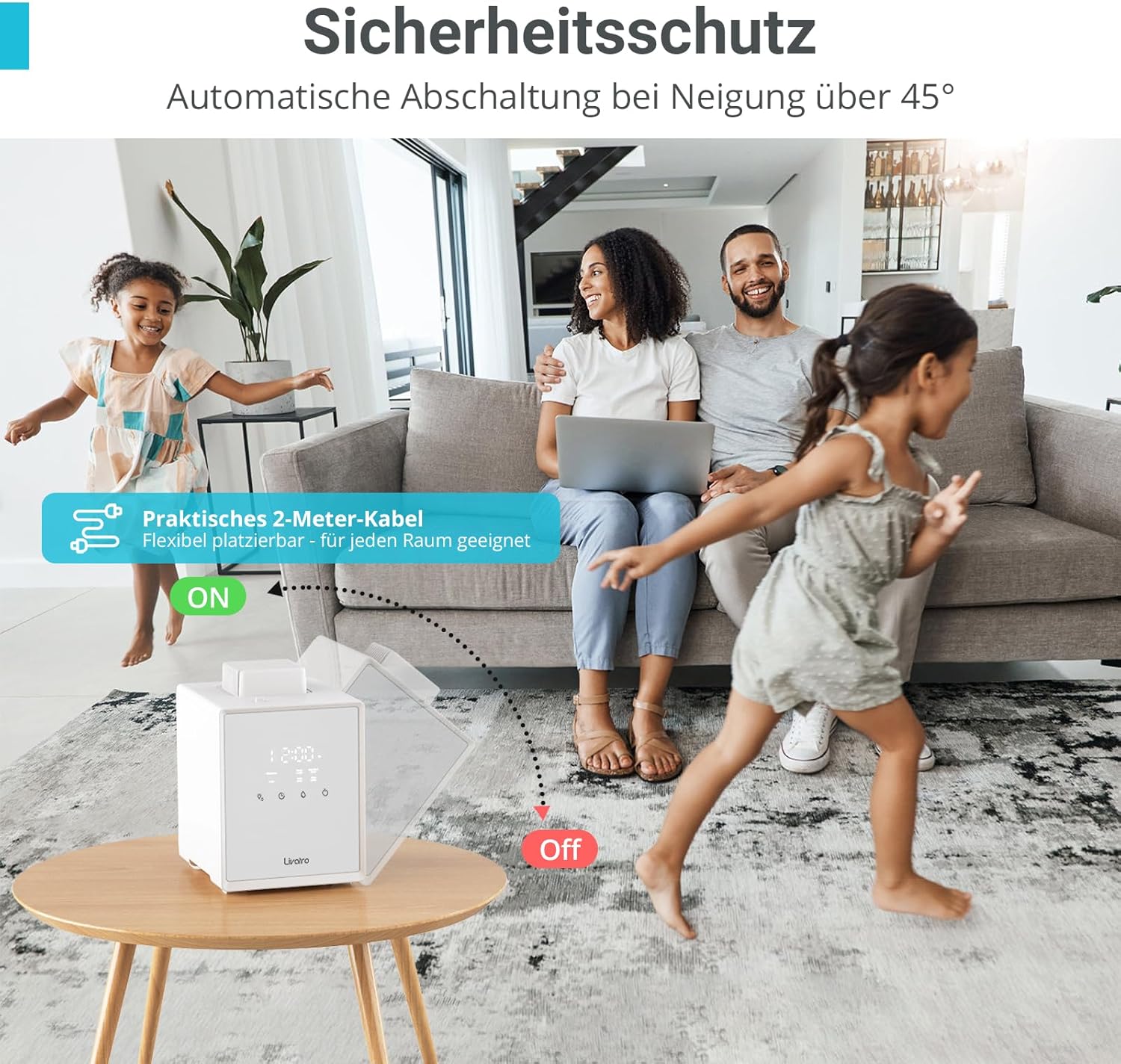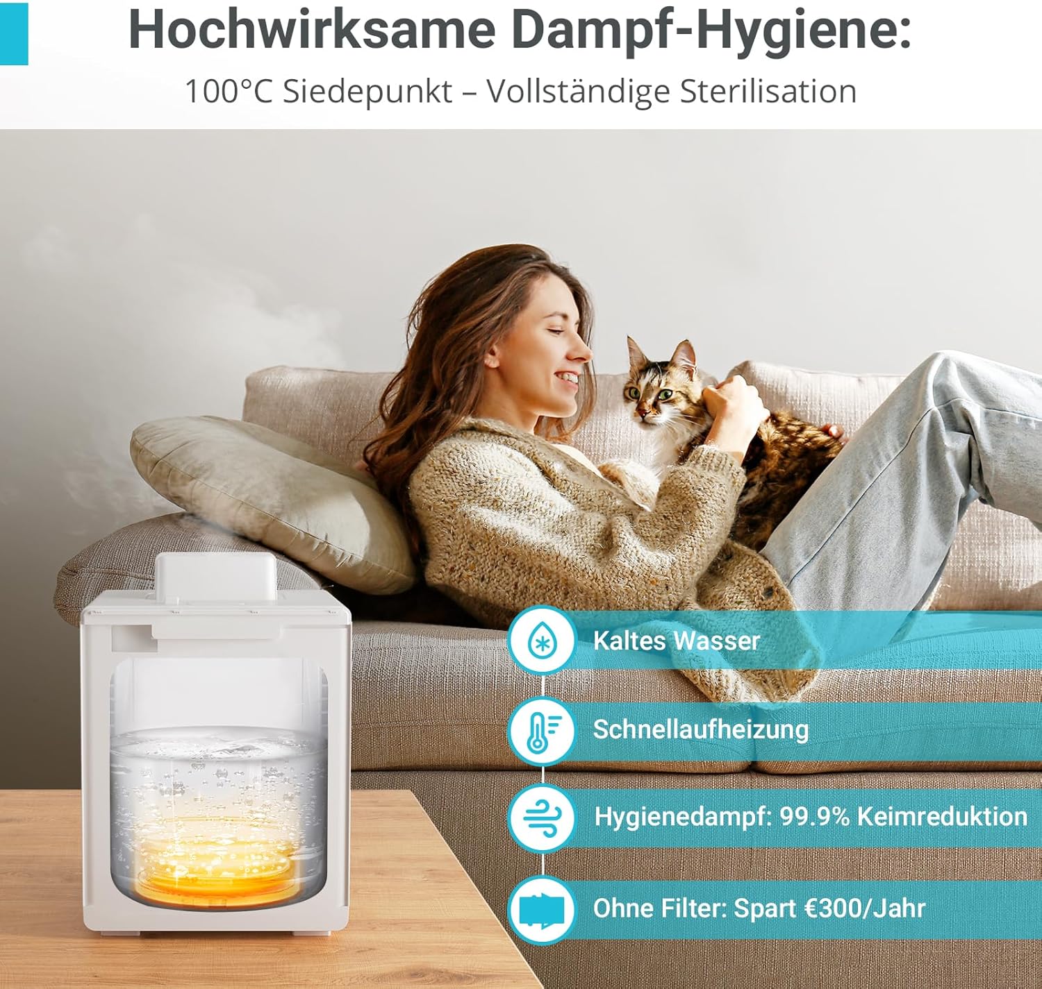 Овлажнител за спалня с горно пълнене, 3 л овлажнител с топла мъгла от неръждаема стомана, намалява 99,97% от бактериите, за спалня и хол, овлажнител, подходящ за съдомиялна машина, с режим на заспиване