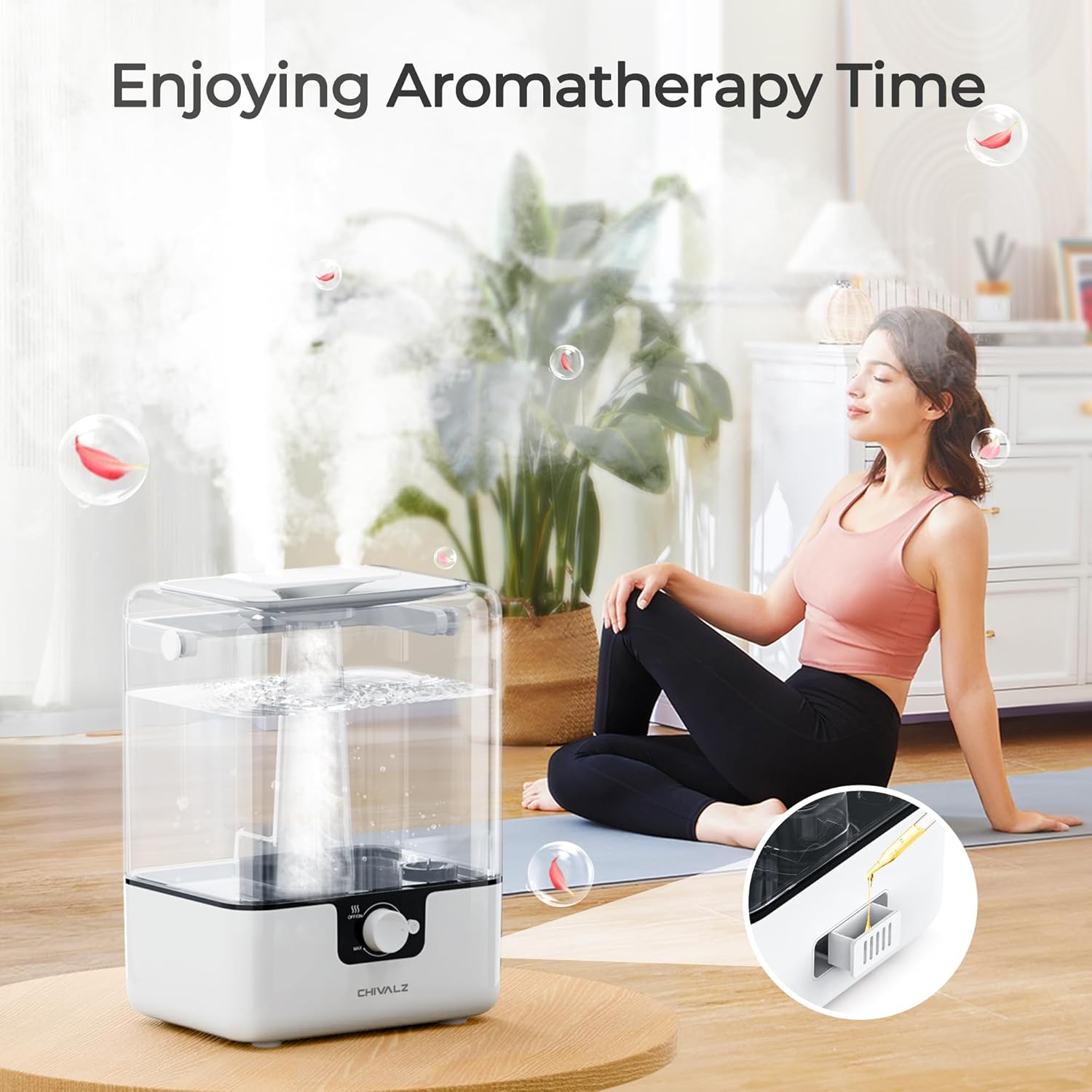 Овлажнител за въздух CHIVALZ, 6L овлажнител за спалня за големи помещения, въртяща се на 360° дюза, пълнене отгоре, овлажнител с хладна мъгла, 50H арома дифузер за спалня, детска стая, растения, бебе, нощна светлина 26 dB