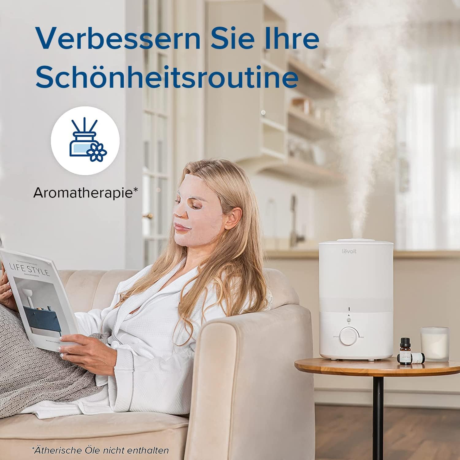 Овлажнител за въздух LEVOIT с горно пълнене 3 л с нощна светлина, въртяща се на 360° дюза, овлажнител, подходящ за съдомиялна машина, овлажнител за тиха стая, 25-часов арома дифузер за спалня, детска стая, растения, бебе
