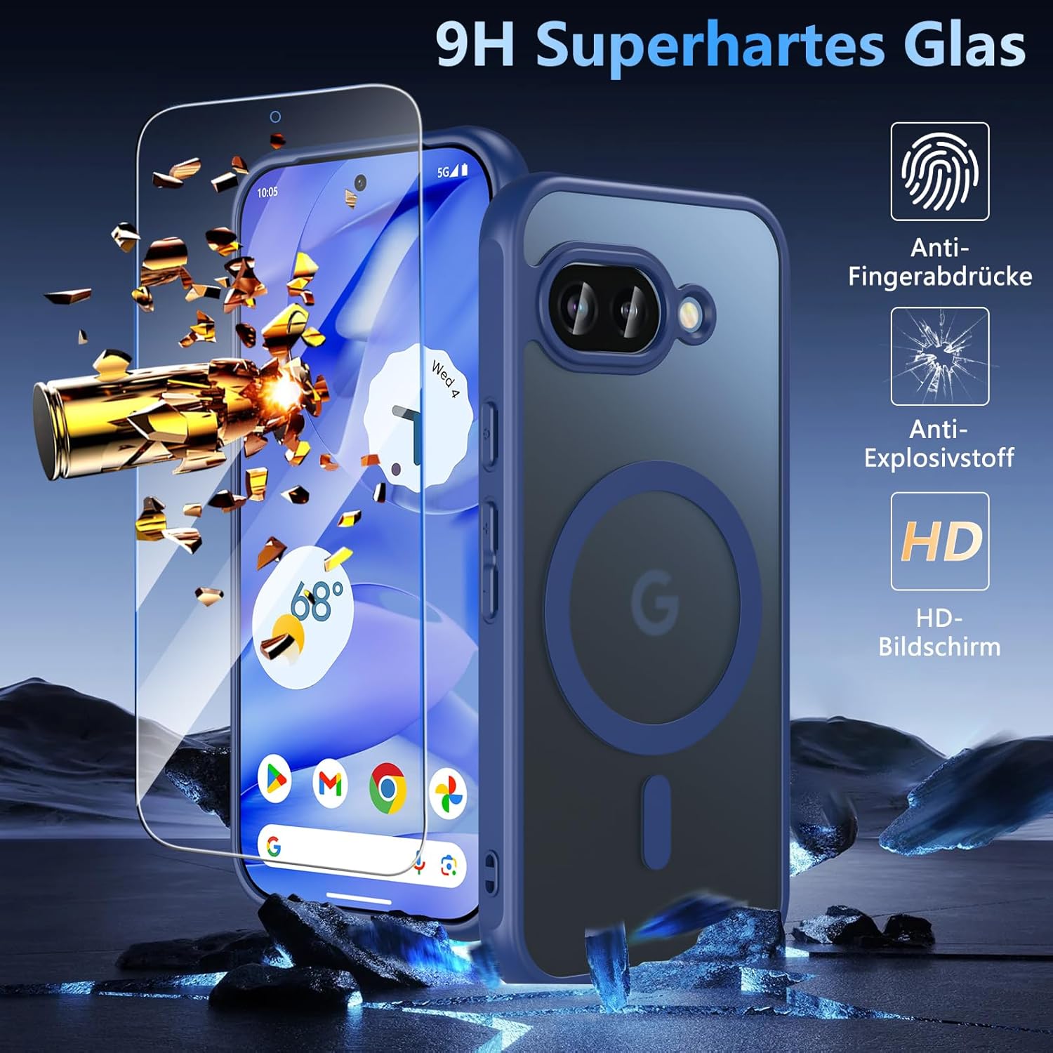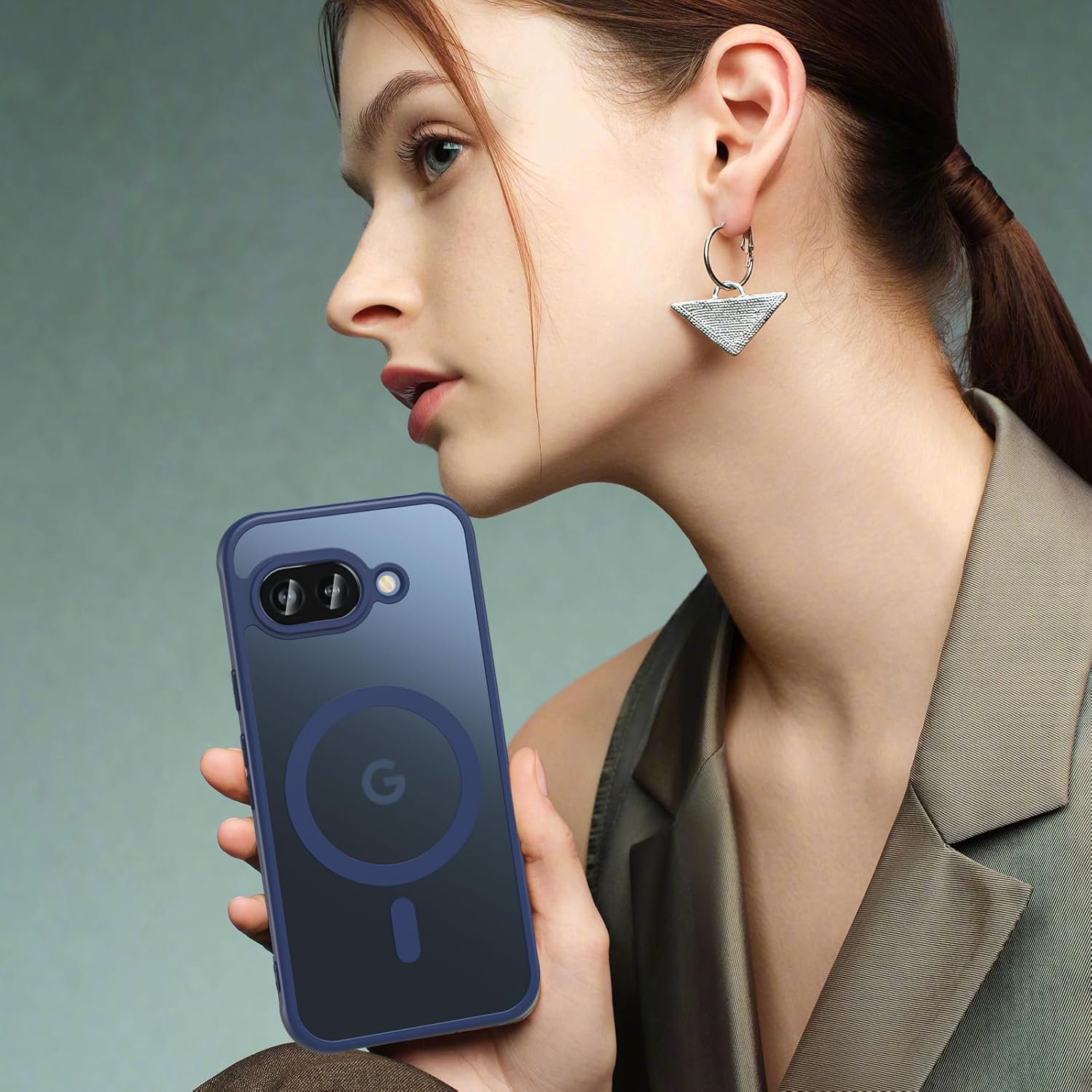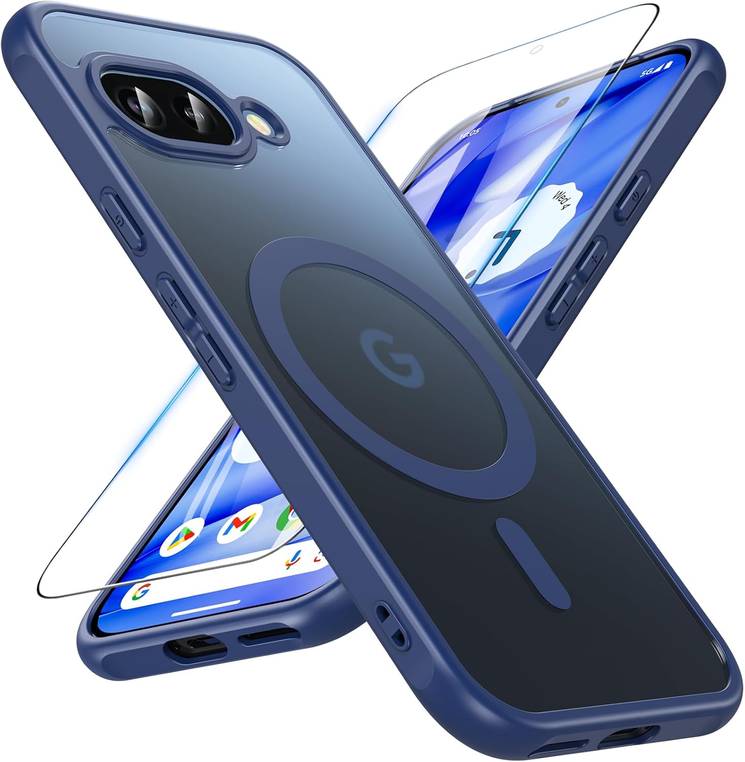 OWKEY Google Pixel 9a калъф, магнитен калъф за Pixel 9a за MagSafe със закалено стъкло, [военен клас защита] полупрозрачен матов удароустойчив калъф за мобилен телефон Pixel 9a, тънък защитен калъф.