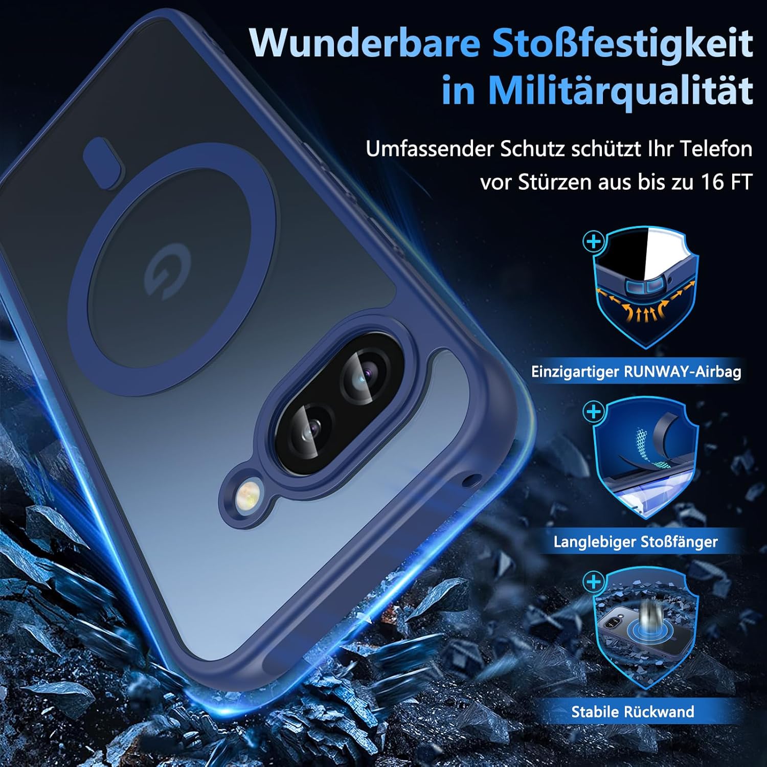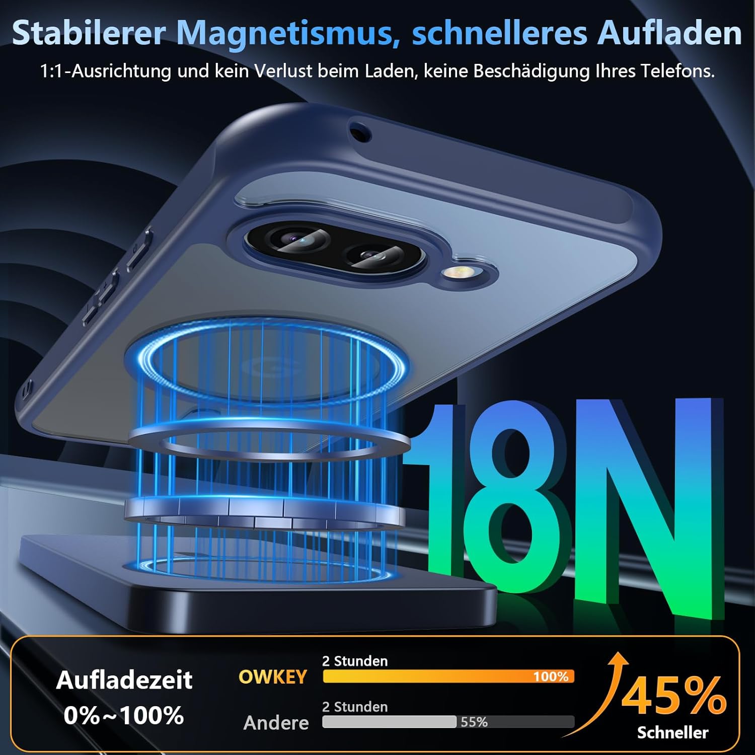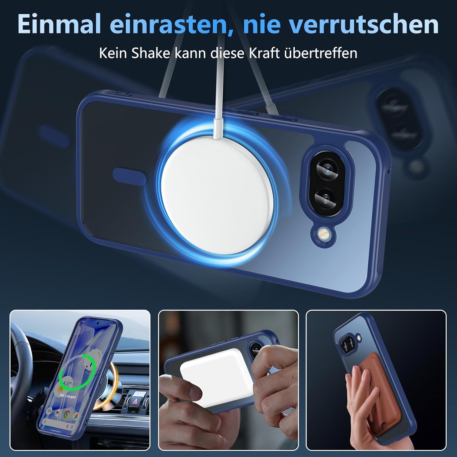 OWKEY Google Pixel 9a калъф, магнитен калъф за Pixel 9a за MagSafe със закалено стъкло, [военен клас защита] полупрозрачен матов удароустойчив калъф за мобилен телефон Pixel 9a, тънък защитен калъф.