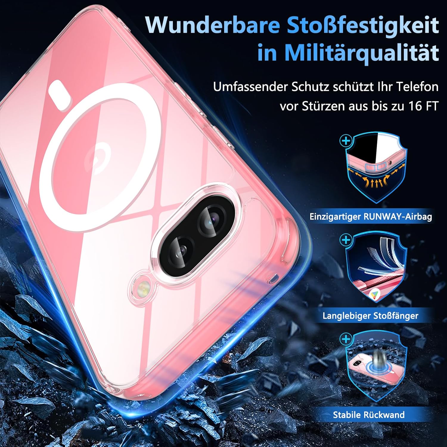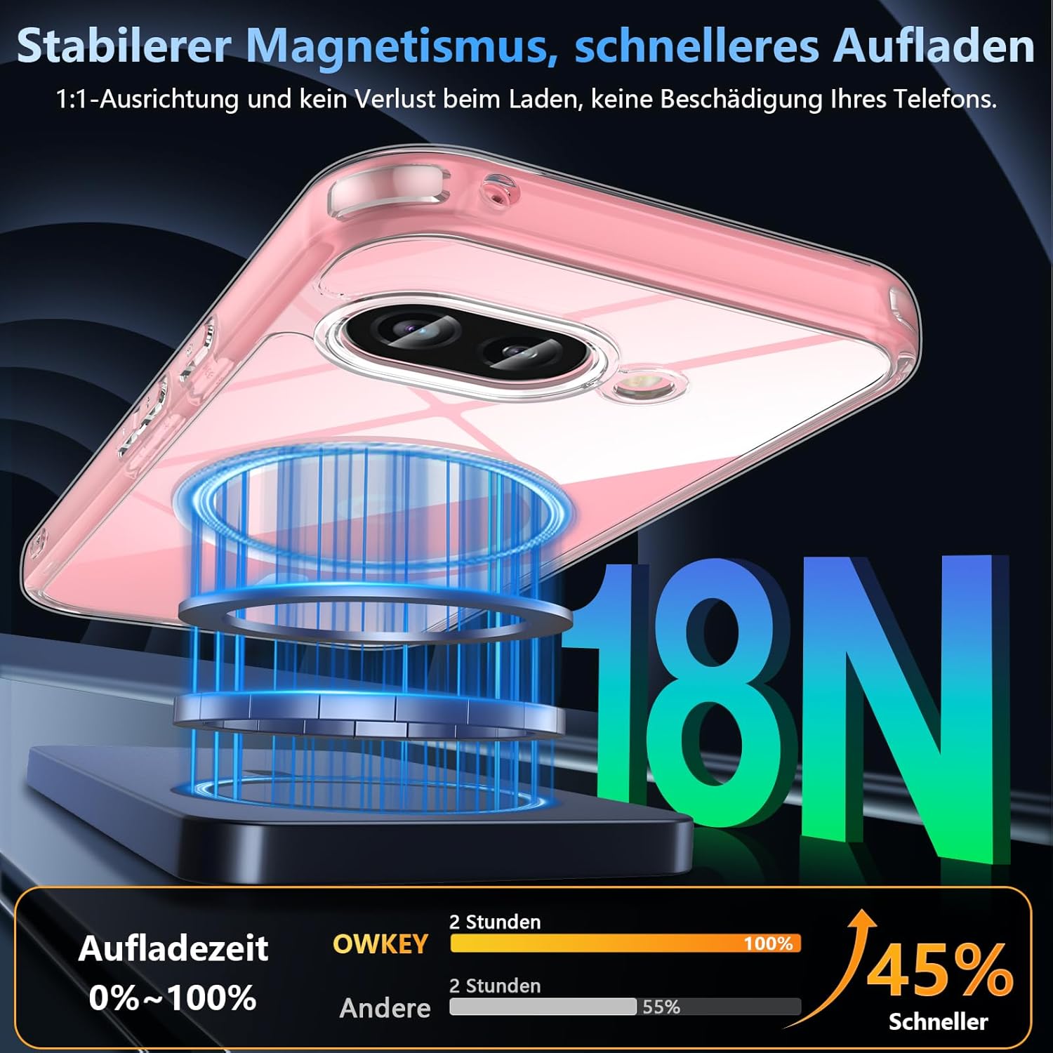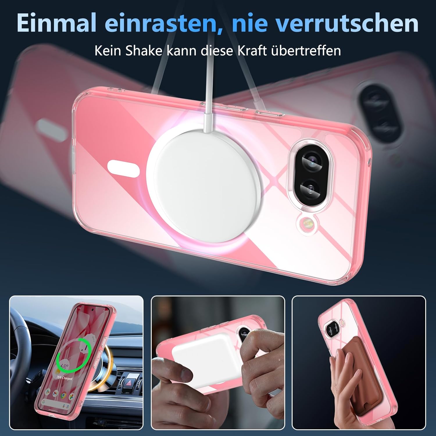 OWKEY Google Pixel 9a калъф, магнитен калъф за Pixel 9a за MagSafe със закалено стъкло, [военна защита] прозрачен заден удароустойчив калъф за мобилен телефон Pixel 9a, тънък защитен калъф.