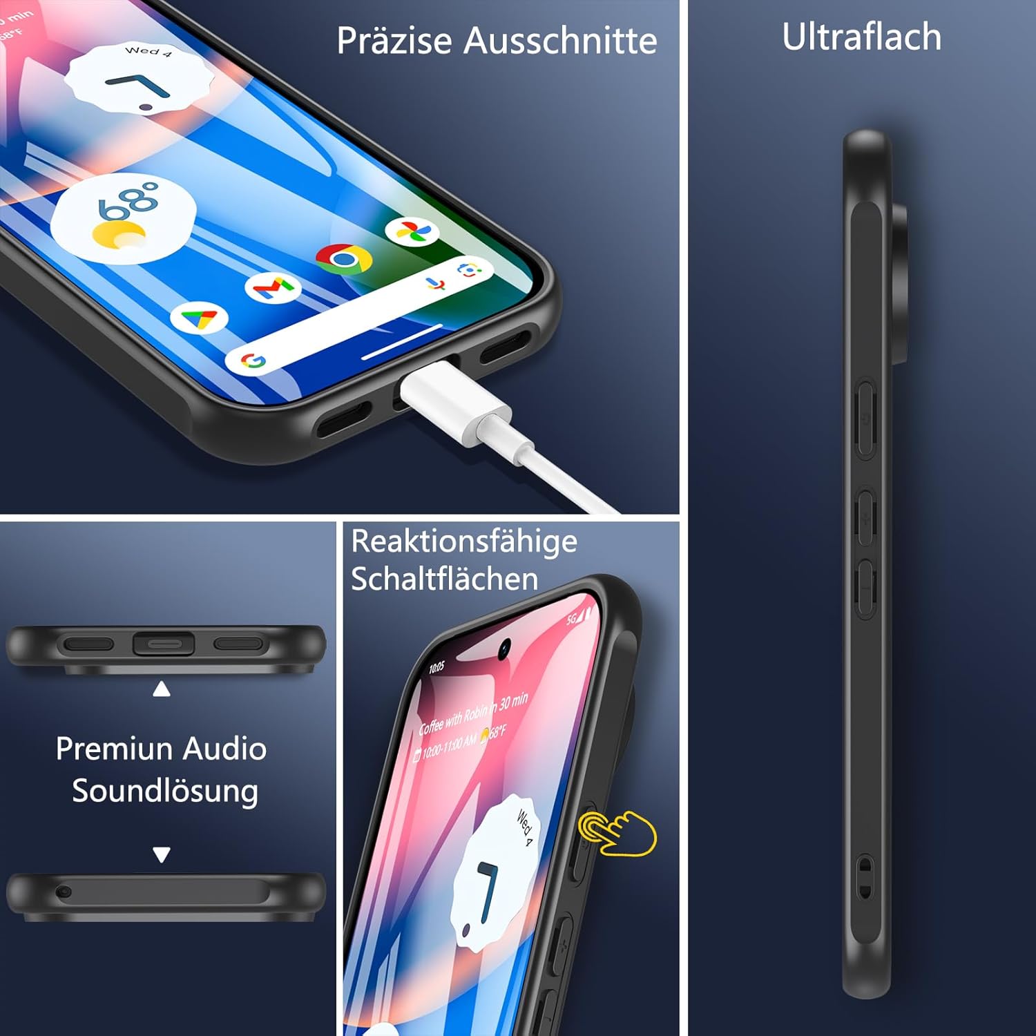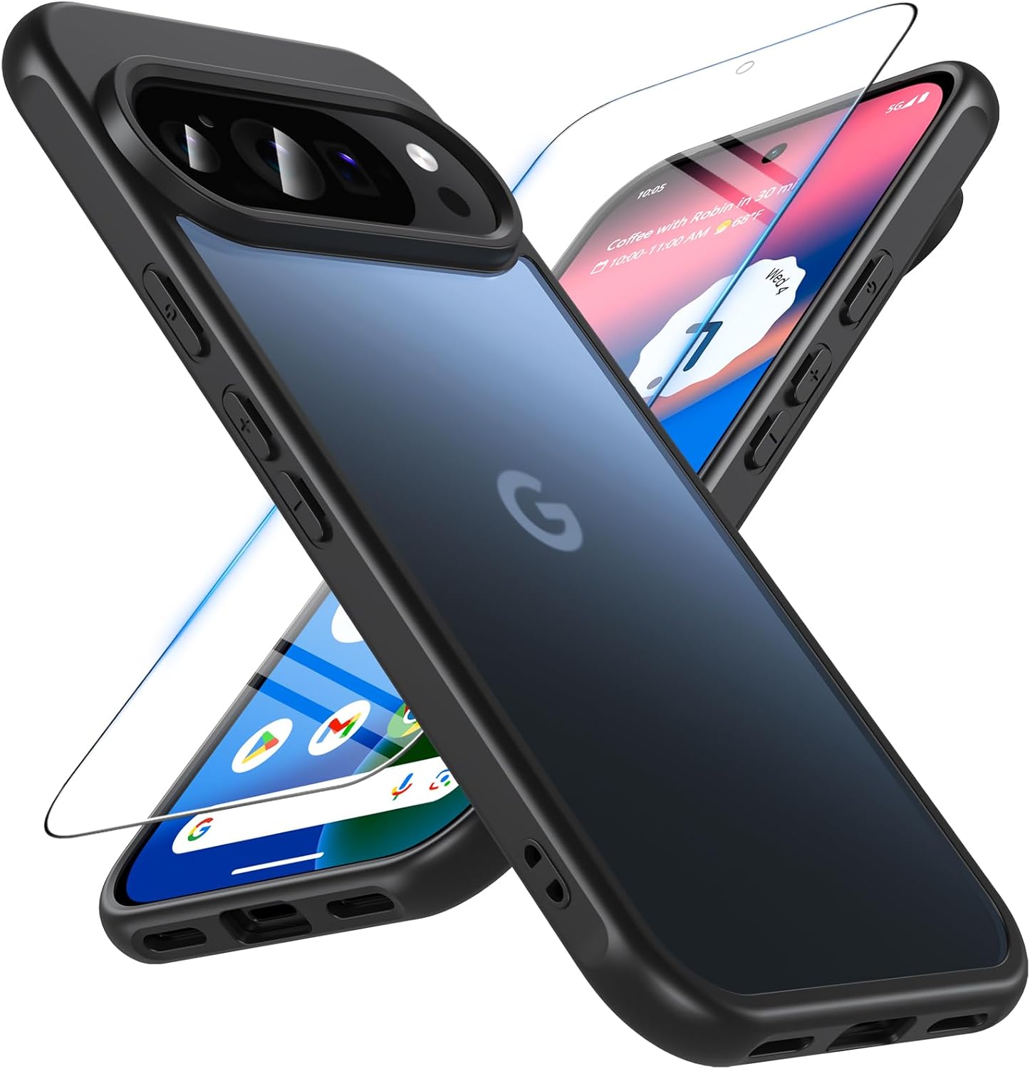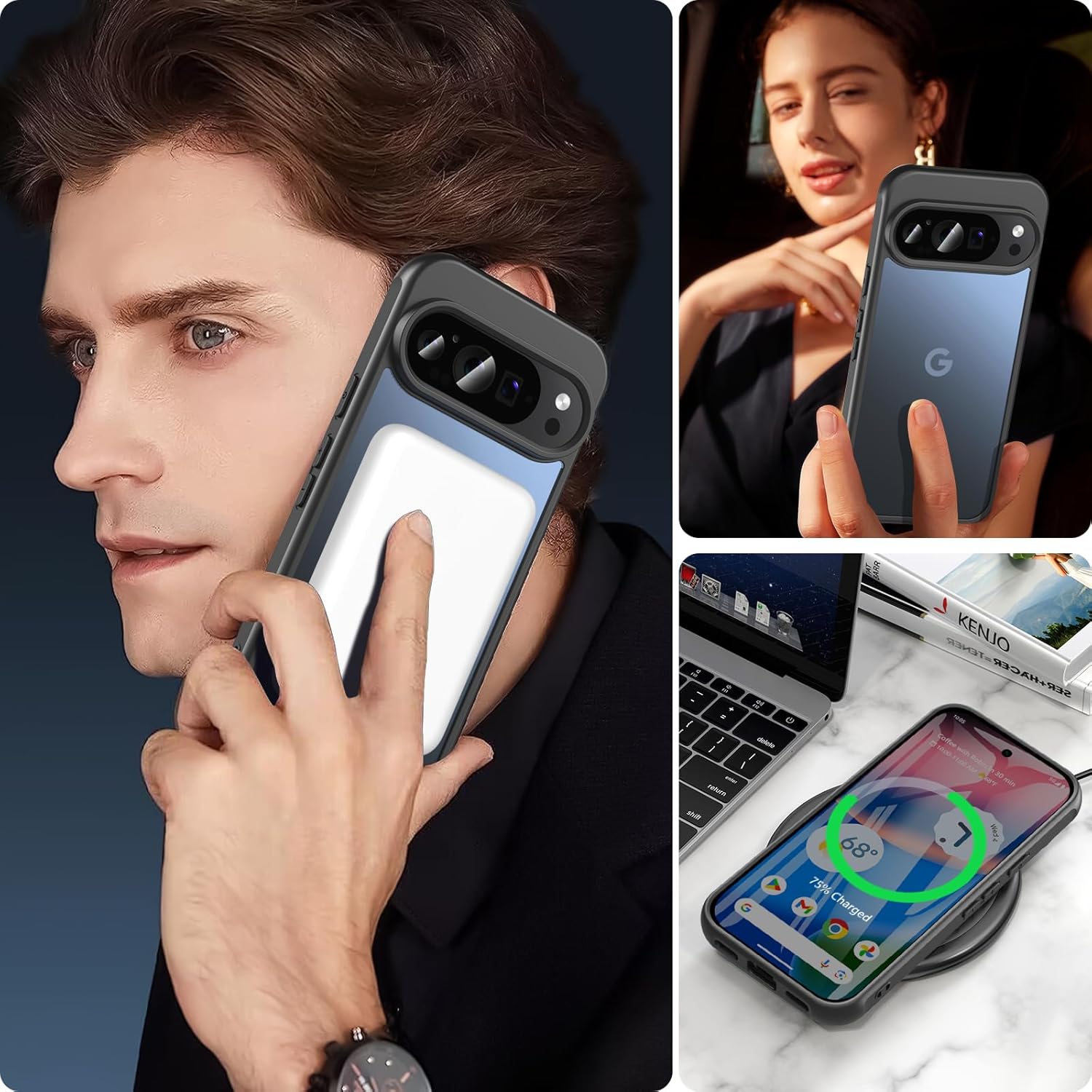 OWKEY Калъф за Google Pixel 10, Калъф за Google Pixel 10 Pro със закалено стъкло [Защита от военен клас] Прозрачен заден удароустойчив калъф за мобилен телефон PIXEL10|10 Pro Калъф с тънък капак, защитен калъф (черен)