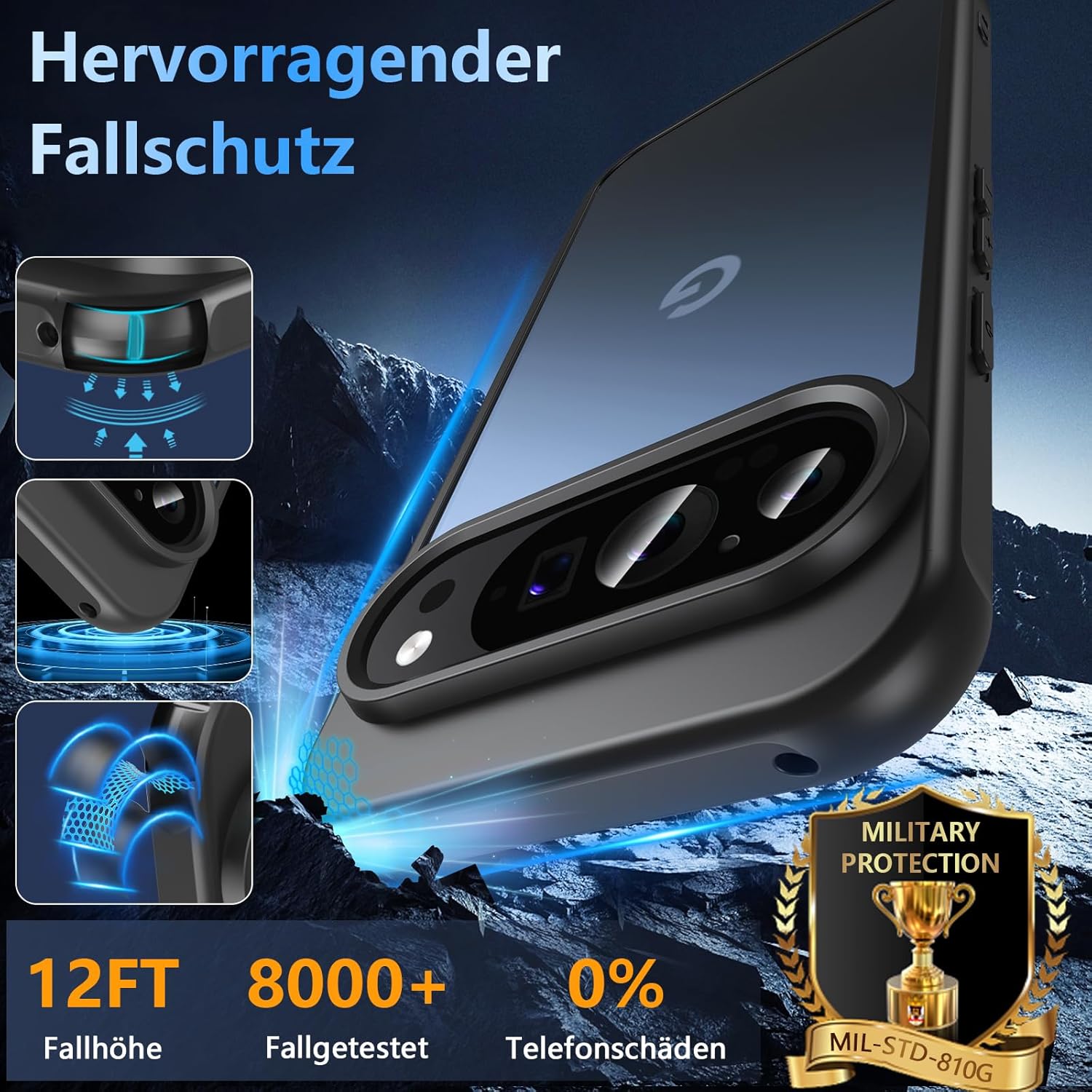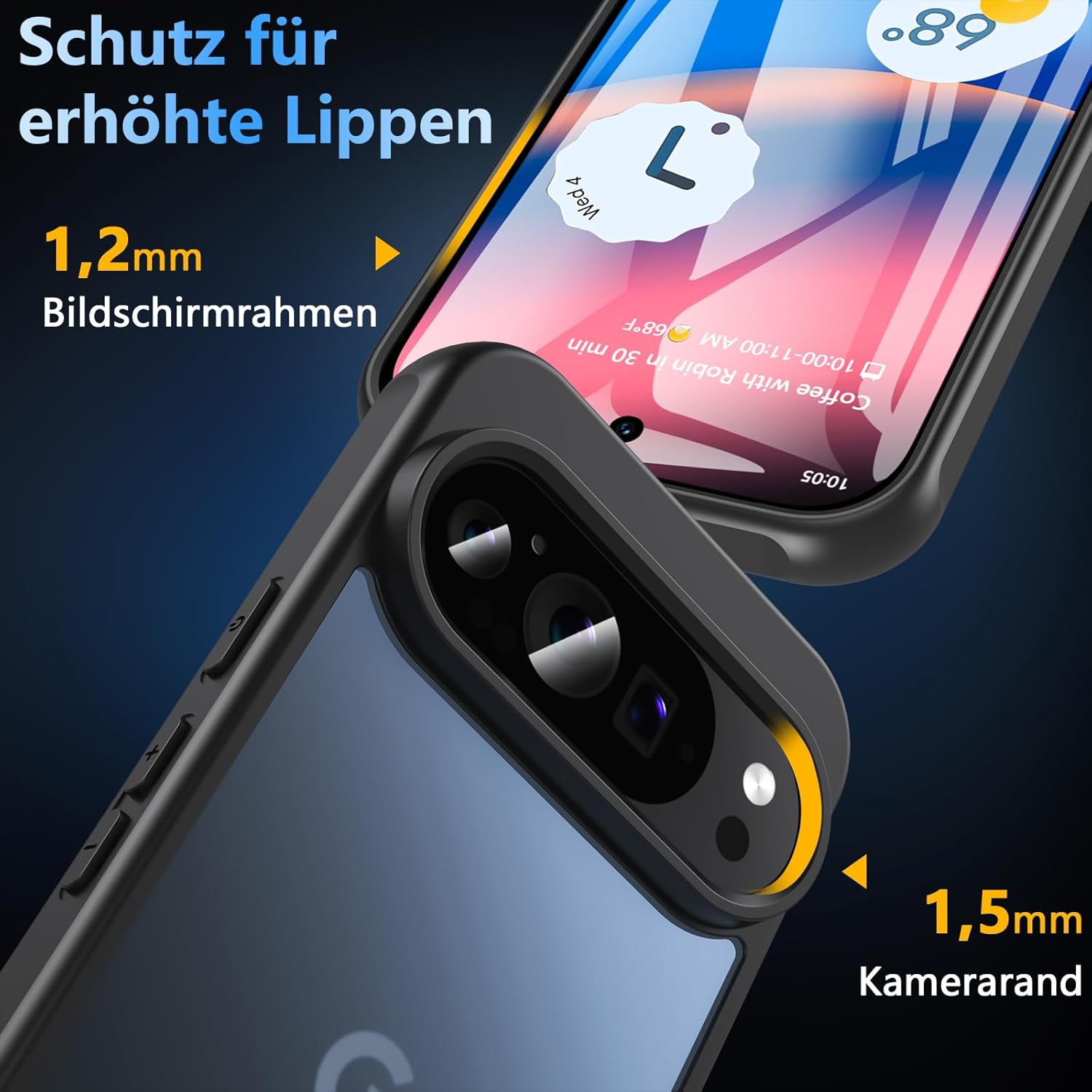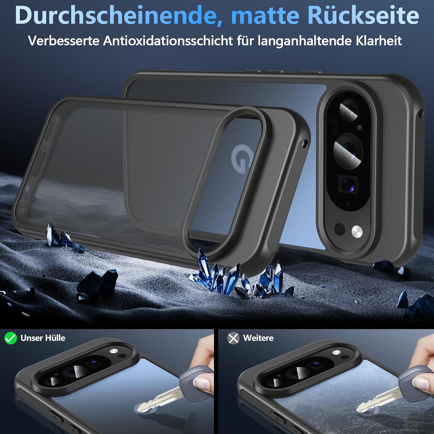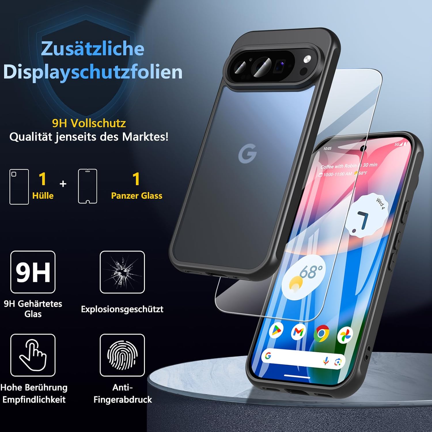 OWKEY Калъф за Google Pixel 10, Калъф за Google Pixel 10 Pro със закалено стъкло [Защита от военен клас] Прозрачен заден удароустойчив калъф за мобилен телефон PIXEL10|10 Pro Калъф с тънък капак, защитен калъф (черен)