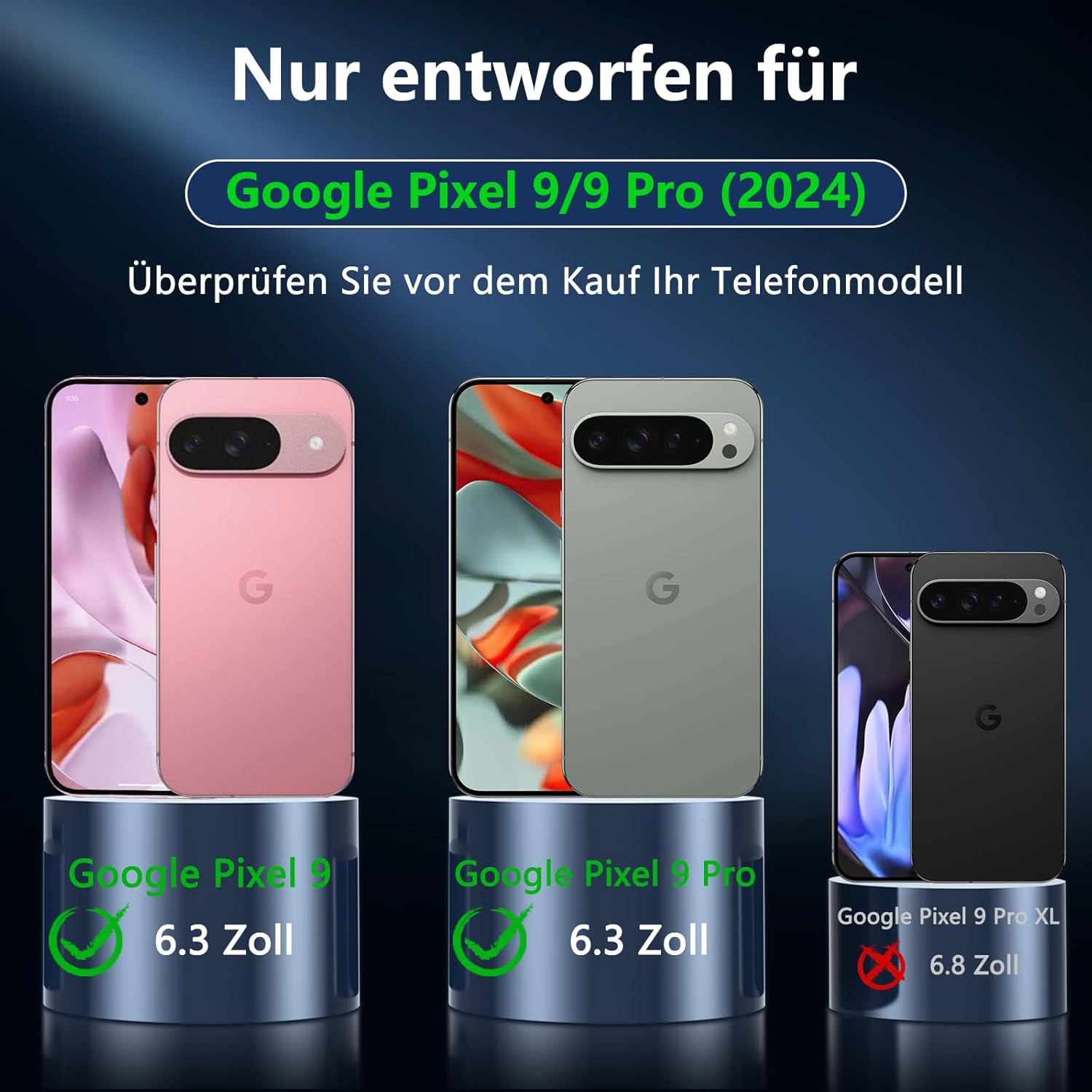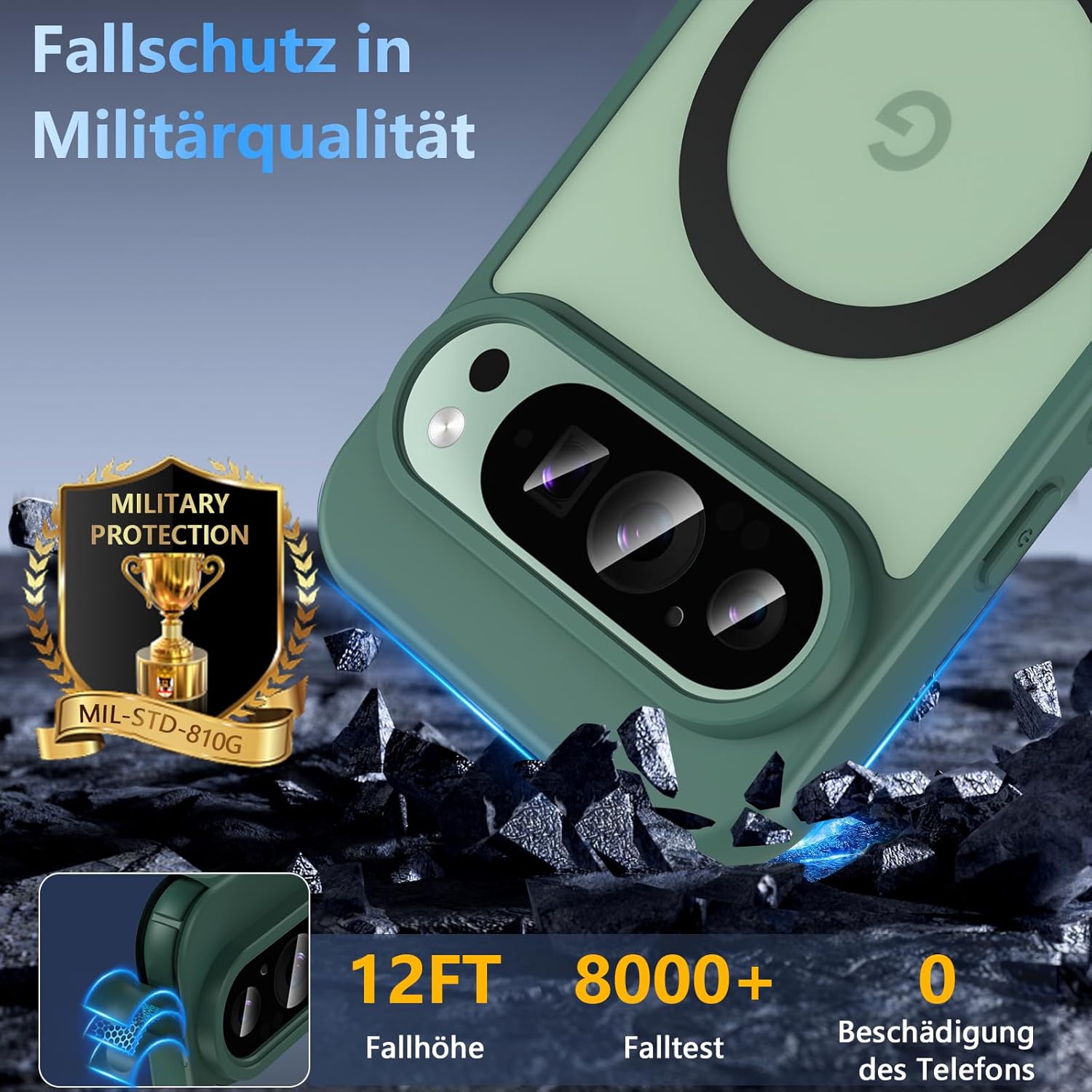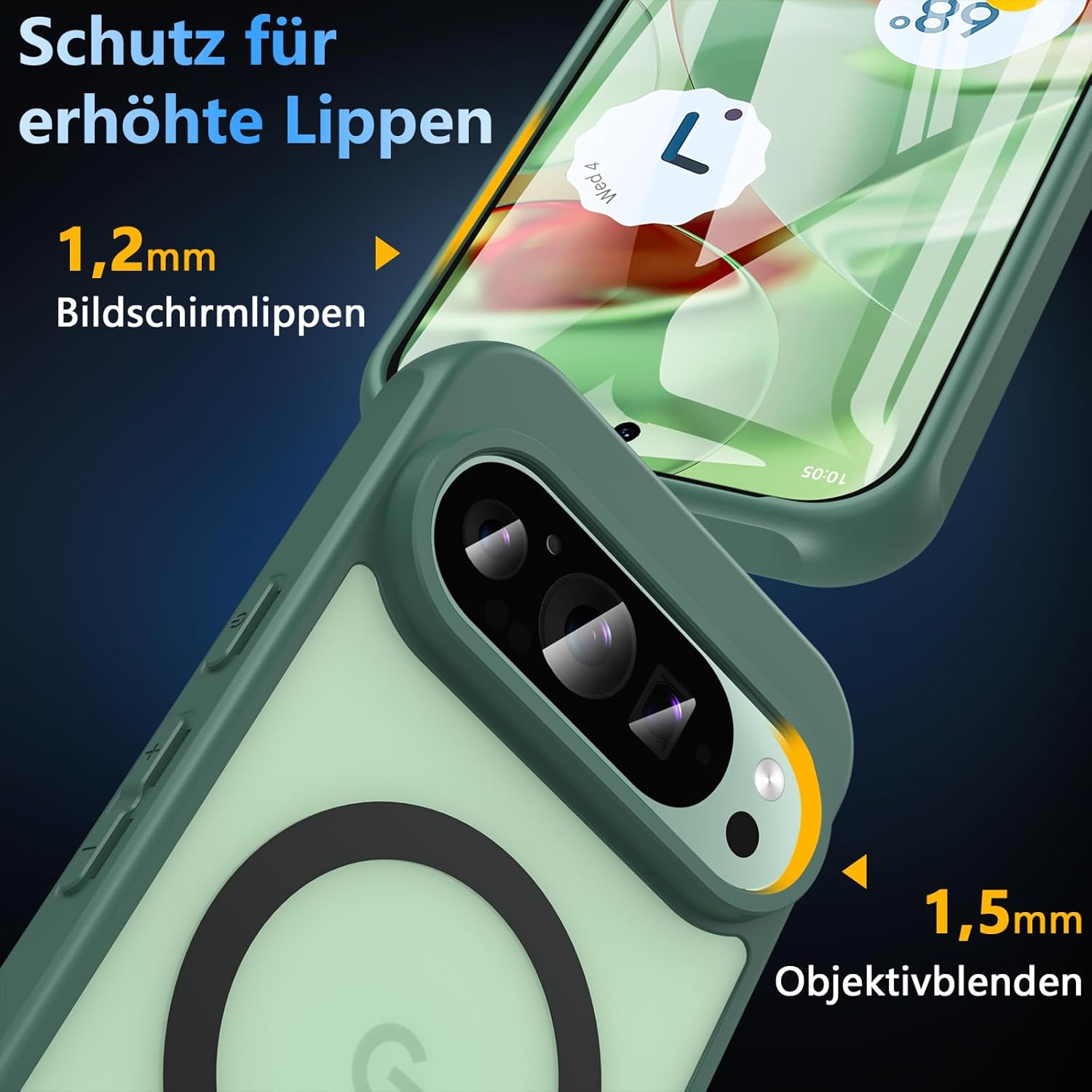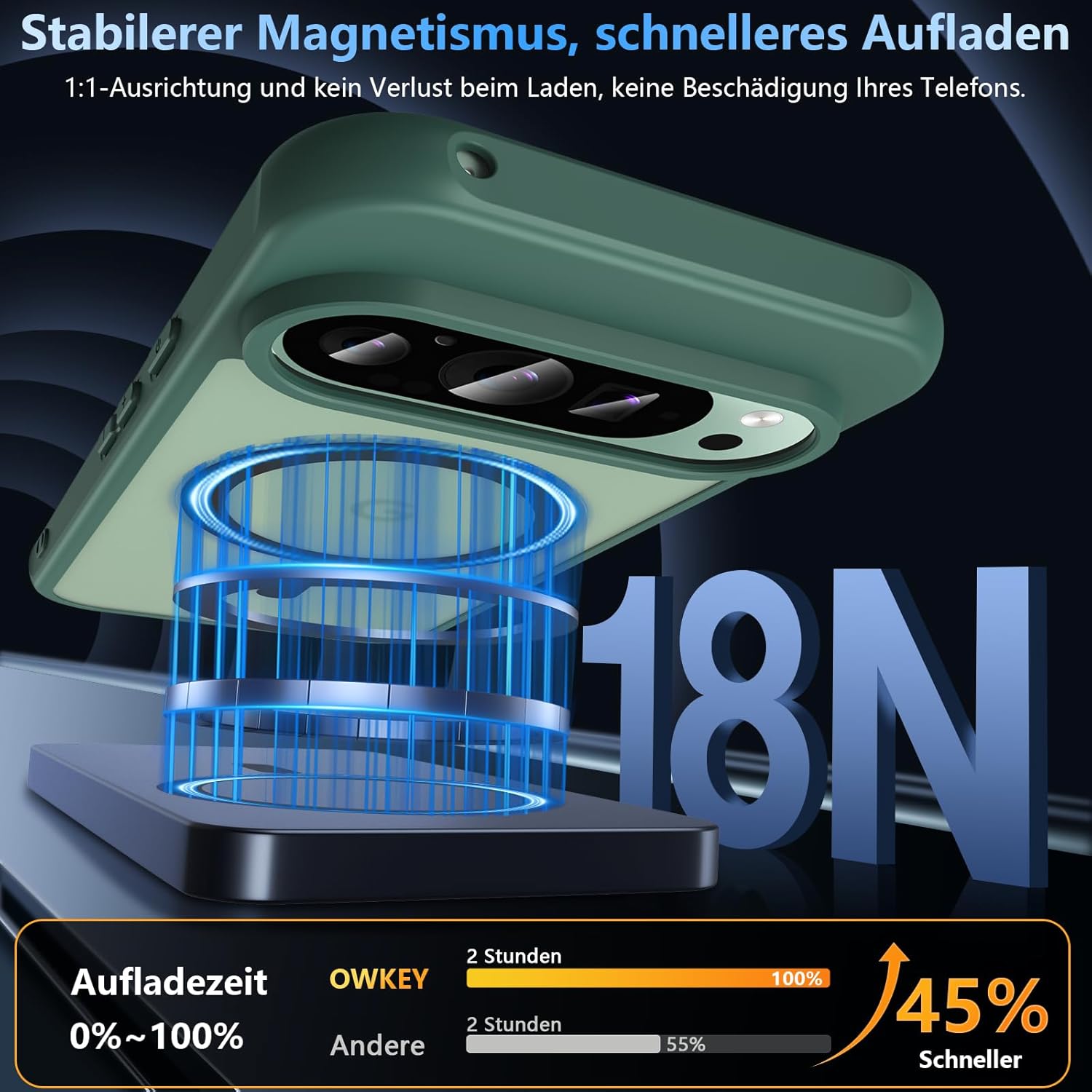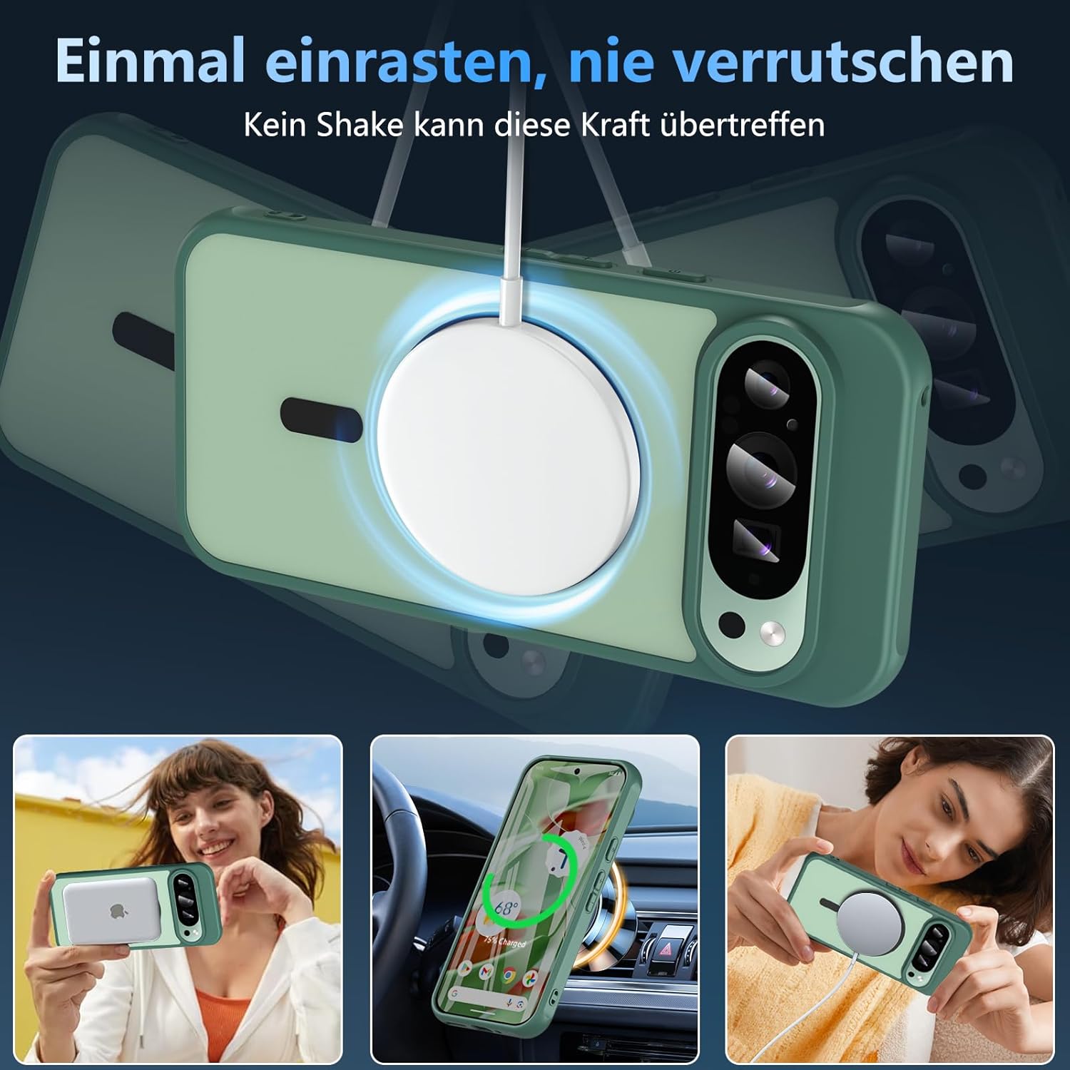 OWKEY Калъф за Google Pixel 9 Pro, Магнитен със закалено стъкло, Удароустойчив защитен калъф за Magsafe, Зелен