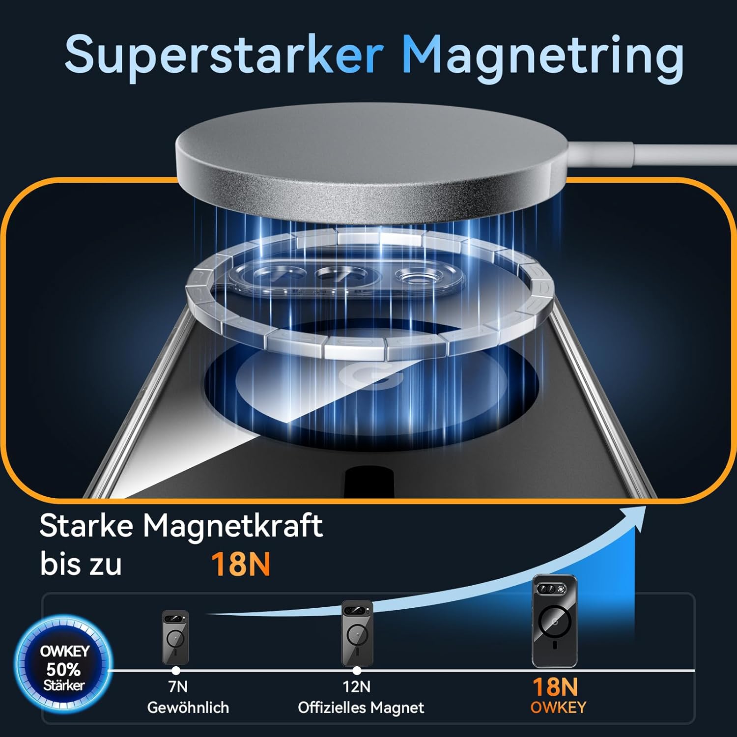 • [Супер магнитно привличане]: Този магнитен калъф за Samsung S25 5G подсилва магнитната връзка и осигурява автоматично подравняване с вграден магнитен пръстен N55. Калъфът се прикрепя добре към магнитни аксесоари като портфейли, стойки за кола и зарядни устройства.